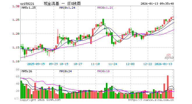 1月13日,现金流ETF嘉实(159221)开盘涨0.00%,报1.258元。现金流ETF嘉实(159221)重仓股方面,中国海油开盘涨0.07%,上汽集团涨1.10%,五粮液涨0.41%,格力电器涨0.17%,洛阳钼业跌0.26%,中国铝业跌0.36%,陕西煤业涨0.93%,上海电气涨0.00%,正泰电器涨0.00%,厦门国贸跌0.28%。
