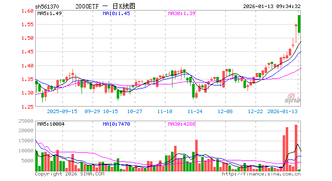 1月13日,2000ETF(561370)开盘涨2.13%,报1.580元。2000ETF(561370)重仓股方面,仕佳光子开盘跌1.19%,华胜天成涨0.09%,英唐智控涨0.00%,帝科股份涨0.00%,金字火腿跌0.32%,中际联合跌0.29%,振华股份跌0.75%,炬芯科技涨0.00%,东方电热涨0.54%,信息发展涨0.20%。