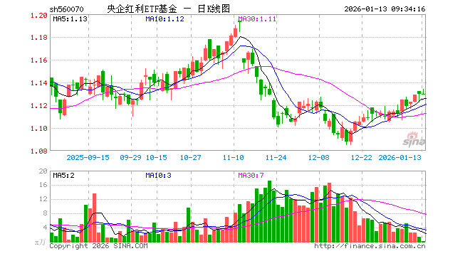 1月13日,央企红利ETF基金(560070)开盘涨0.00%,报1.130元。央企红利ETF基金(560070)重仓股方面,中远海控开盘涨0.34%,中材科技跌0.79%,鲁西化工跌0.42%,中粮糖业跌0.06%,中国神华涨0.19%,宝钢股份涨0.27%,中国石化跌0.34%,中国外运涨0.17%,亚普股份跌0.96%,新钢股份涨0.00%。
