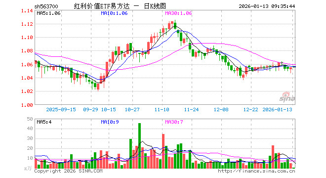 1月13日,红利价值ETF易方达(563700)开盘涨0.09%,报1.056元。红利价值ETF易方达(563700)重仓股方面,中远海控开盘涨0.34%,潞安环能跌0.54%,中粮糖业跌0.06%,南钢股份涨2.40%,山西焦煤跌0.85%,兖矿能源跌0.28%,成都银行跌0.06%,南京银行涨0.09%,大秦铁路涨0.00%,兴业银行涨0.10%。