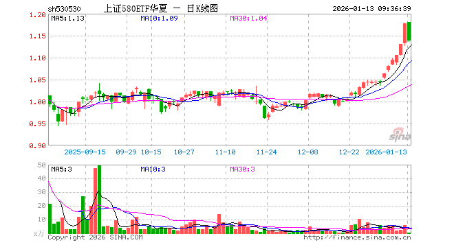 上证580ETF华夏(530530)业绩比较基准为上证580指数收益率,管理人为华夏基金管理有限公司,基金经理为李俊,成立(2025-08-20)以来回报为15.49%,近一个月回报为13.50%。