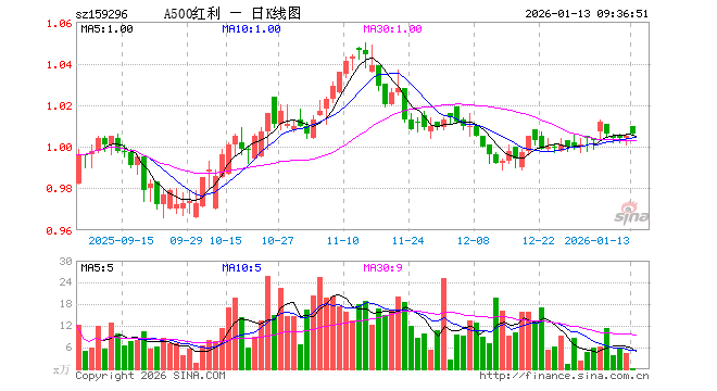 A500红利低波ETF(159296)开盘涨0.50%,重仓股农业银行跌0.27%,雅戈尔跌0.13%
