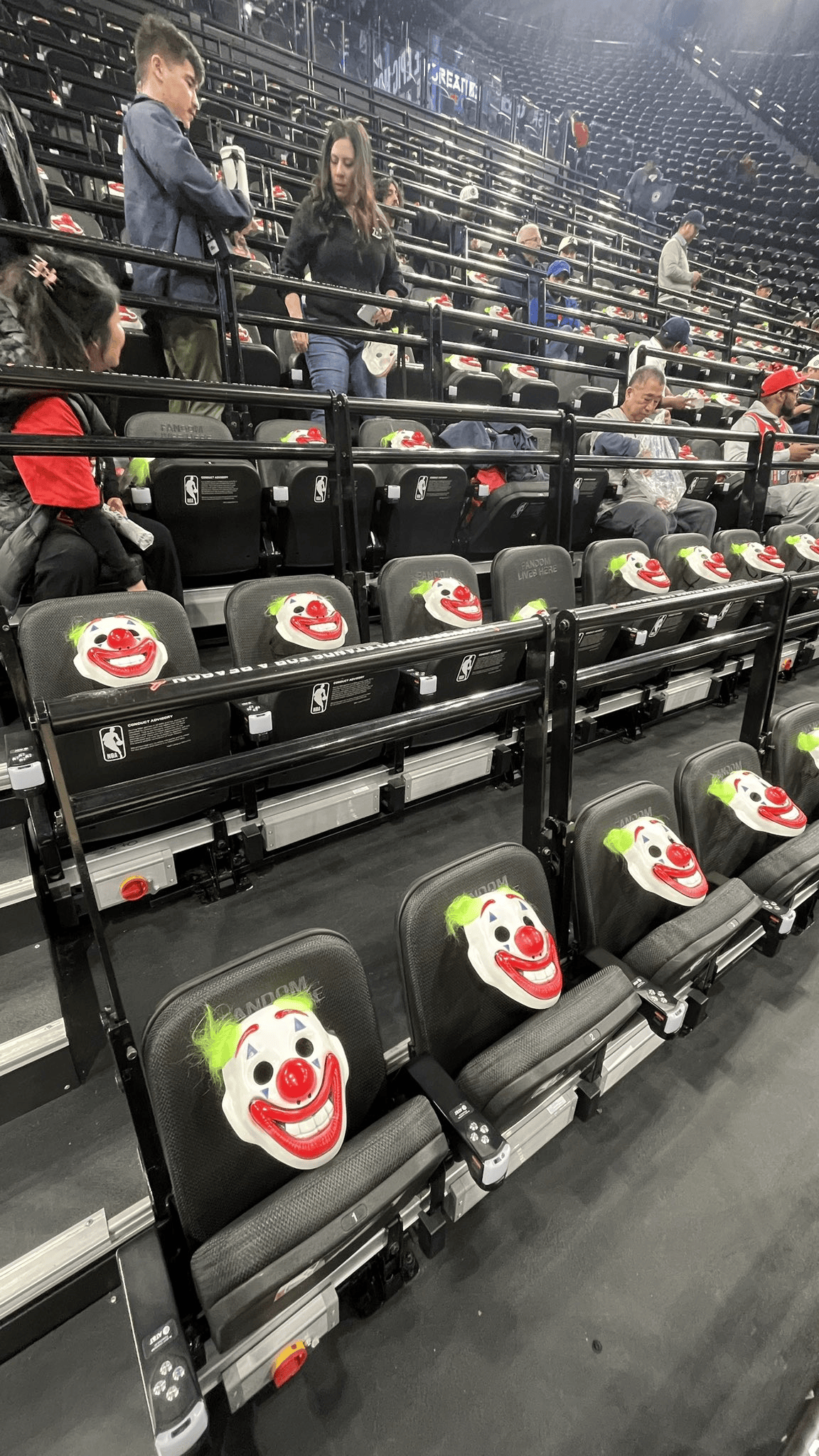 快船记者TomerAzarly发文报道:今晚快船对阵黄蜂的比赛中,快船主场“球迷墙”里摆放着小丑面具,就像两年前万圣节吓唬拉梅洛-鲍尔的小丑一样。