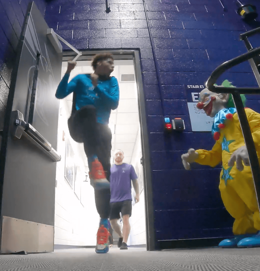 2024年万圣节,黄蜂官方恶搞用小丑吓唬拉梅洛-鲍尔,后者被吓到后对小丑拳打脚踢。