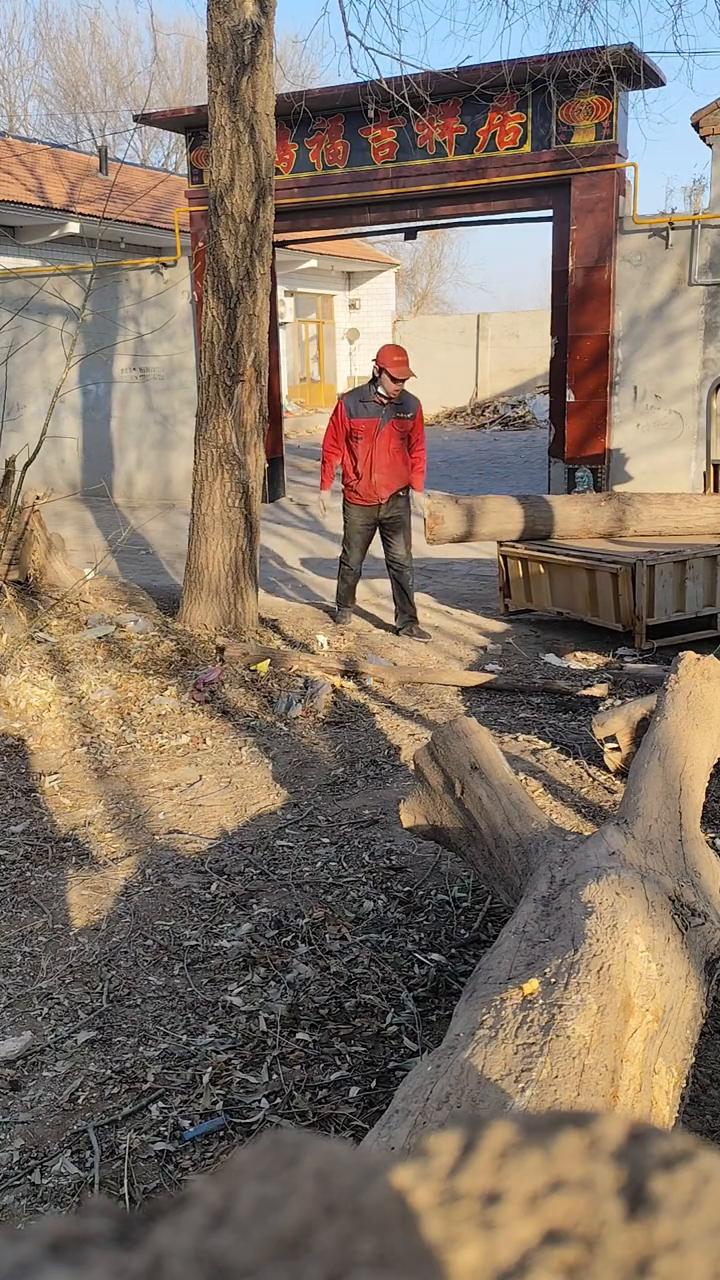 砸了脚自己揉揉,还是要把木头搬上去。 装上车拉到工坊去,然后量好尺寸,掂量掂量好做什么,把它断开,一上坡就掉下来,还要再次搬上去。一天天的和大木头较劲,这不是有毛病吗?晚上说,我这搬木头呢。 木石心音·河北沧州原生态茶桌花架摆件。