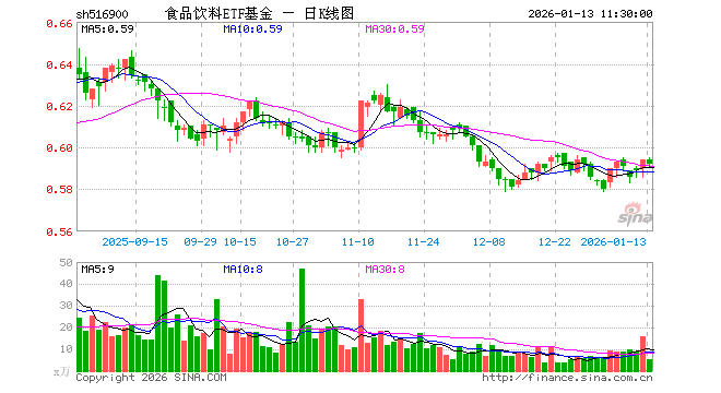 1月13日,截止午间收盘,食品饮料ETF基金(516900)跌0.34%,报0.592元,成交额327.70万元。食品饮料ETF基金(516900)重仓股方面,贵州茅台截止午盘跌0.30%,五粮液涨0.03%,伊利股份跌0.07%,泸州老窖跌0.02%,山西汾酒跌0.90%,海天味业跌0.08%,东鹏饮料涨0.64%,洋河股份涨0.35%,今世缘跌0.61%,古井贡酒跌0.23%。