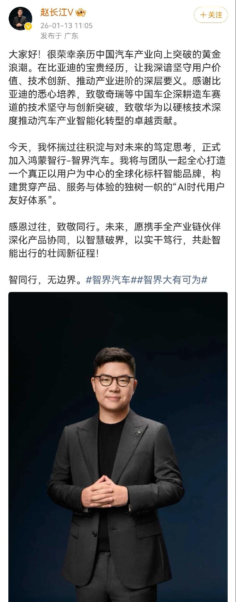 赵长江正式入职智界了!这位在腾势时期以低调务实著称的老兵,这次终于可以不低调了。
