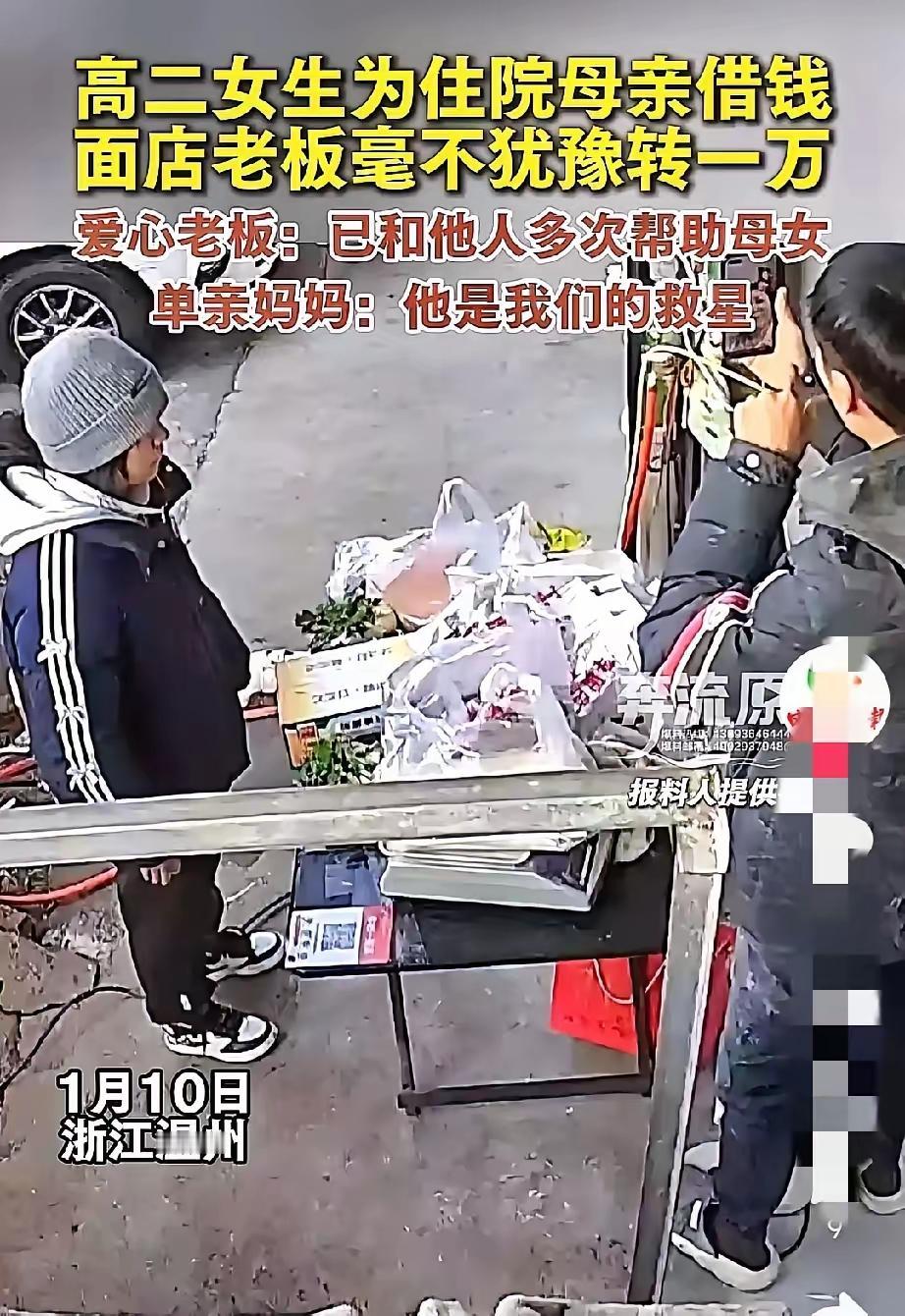 这是一则感人至深的善举故事,展现了普通人善良、无私的品质,也让人感受到社会的温暖与希望。以下是对这个故事的总结与感悟: 故事摘要: 在浙江温州,面馆老板李先生在日常经营中遇到一位17岁的女学生,她因母亲突发重病未能筹到足够的医疗费,孤立无助。李先生得知后,没有犹豫,立即借出了10,000元救急,还用温暖的话语慰藉女孩。女孩感激涕零,将两碗热气腾腾的面和藏在里面的卤蛋带给母亲,温暖了这个冬天,也传递了人间的大爱。 核心价值观: 无私奉献:李先生不计较得失,出手相助,让人看到了善良的力量。 社区凝聚:善举激发了社区和慈善组织的响应,形成了爱的传递链条。 小善汇聚大爱:一位平凡的老板用实际行动传递温暖,激励社会存善意,修补人性之美。 社会意义: 这个故事提醒我们,每个人都可以成为他人生命中的光。即使是微小的善举,也能带来巨大的影响力。它呼吁社会关注弱势群体,弘扬助人为乐的精神,共建一个温馨、互助的社会环境。 我们向李国色老板致敬!他的善行不仅救助了女孩一家,更在无声中传递了社会的正能量。希望更多的人像他一样,用行动温暖他人,传递爱心。 如果你也被感动,或愿意加入到帮助他人的行列中,请传播这份温暖,点亮更多人的生活!感人心灵的故事 温情感动故事