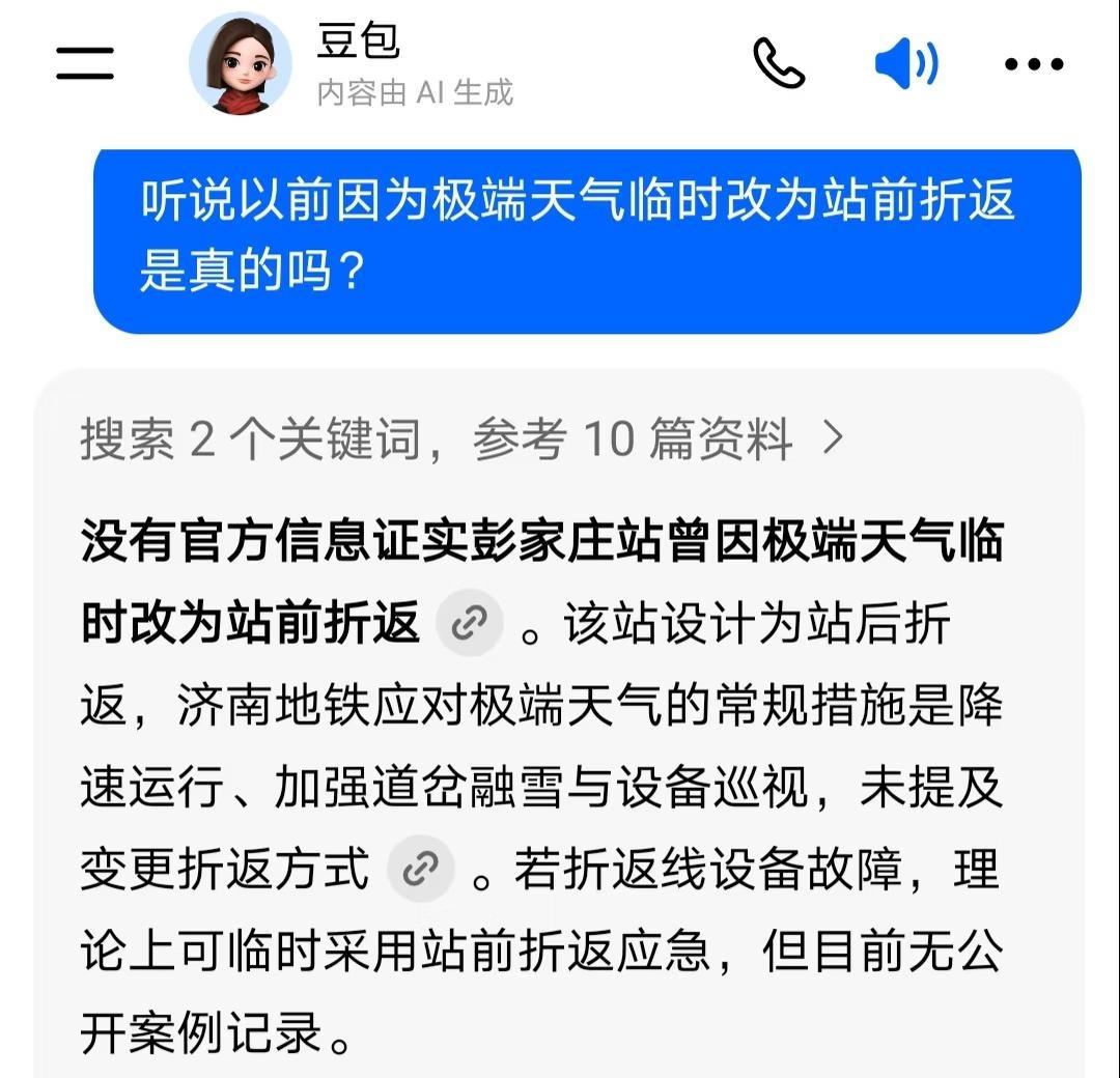 济南地铁2号线彭家庄站搞过站前折返吗? 我就是问一问而已,彭家庄站是济南地铁2号线终点站,正常情况下是站后折返的。我听说这座车站,在极端天气下临时改为站前折返,这是真的吗?济南地铁 济南地铁2号线 地铁迷