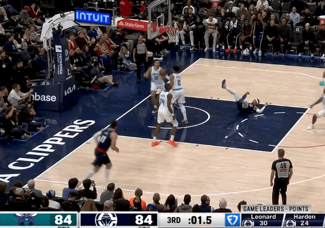 比赛第三节,乔丹-米勒快速奔袭强攻上篮打进,快船86-84领先黄蜂进入末节。
