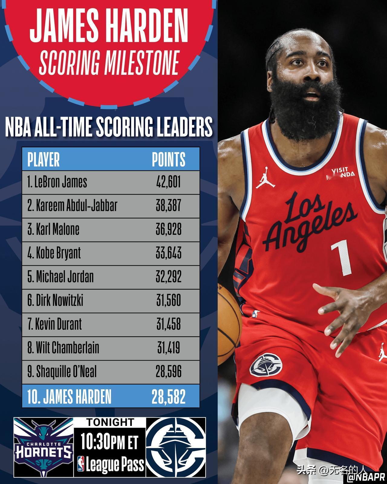 哈登三分命中超越奥尼尔,总得分来到第九,下一个追张伯伦 下半场开始,哈登三分命中,生涯总得分超越奥尼尔,来到历史第九,下一个追赶张伯伦,差距有2800多分,还得一两个赛季完成超越,哈登还是保持很棒状态,继续调整,今晚奥尼尔要伤心了,马上掉出十名开外了,雷霆三少都在发力