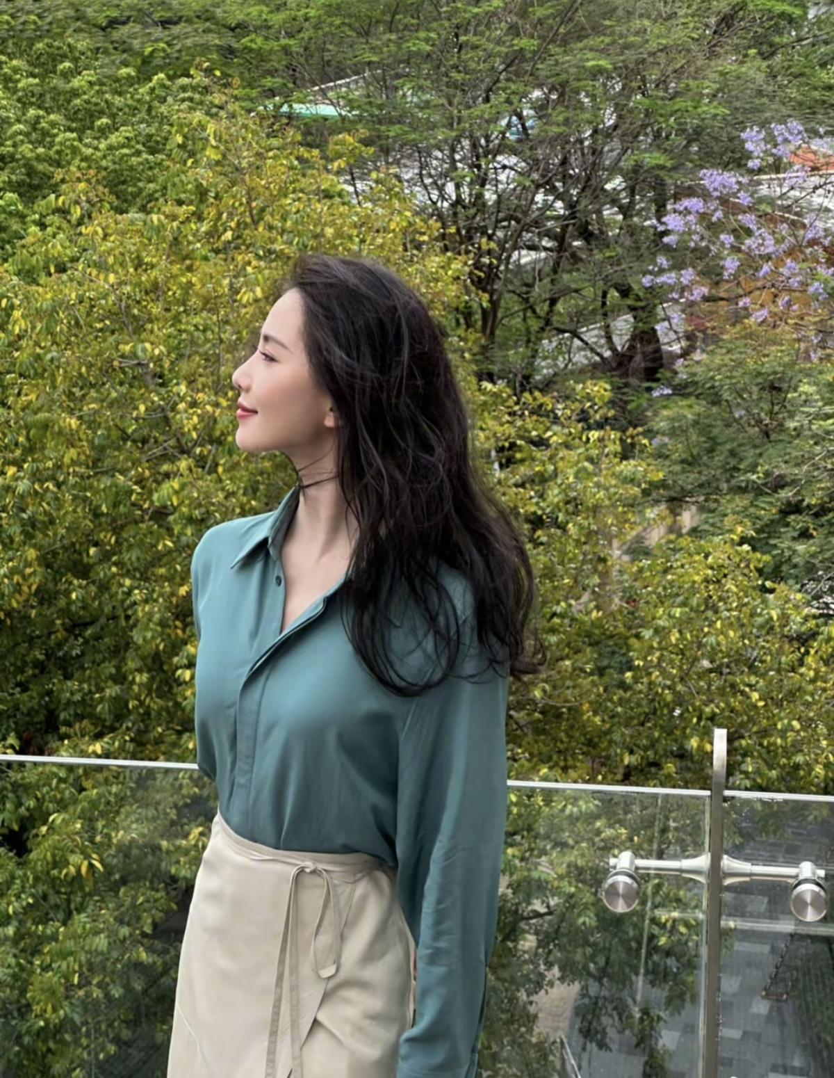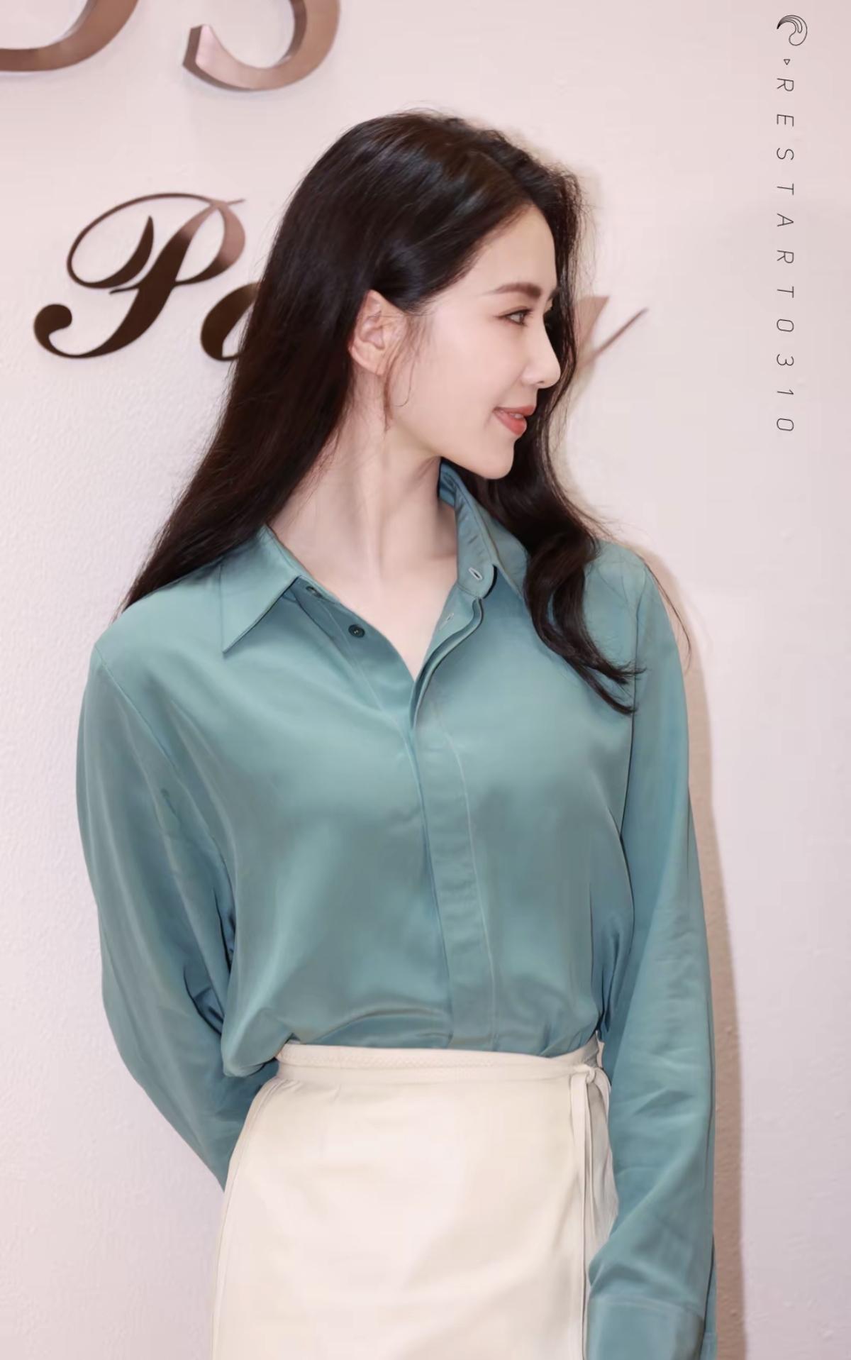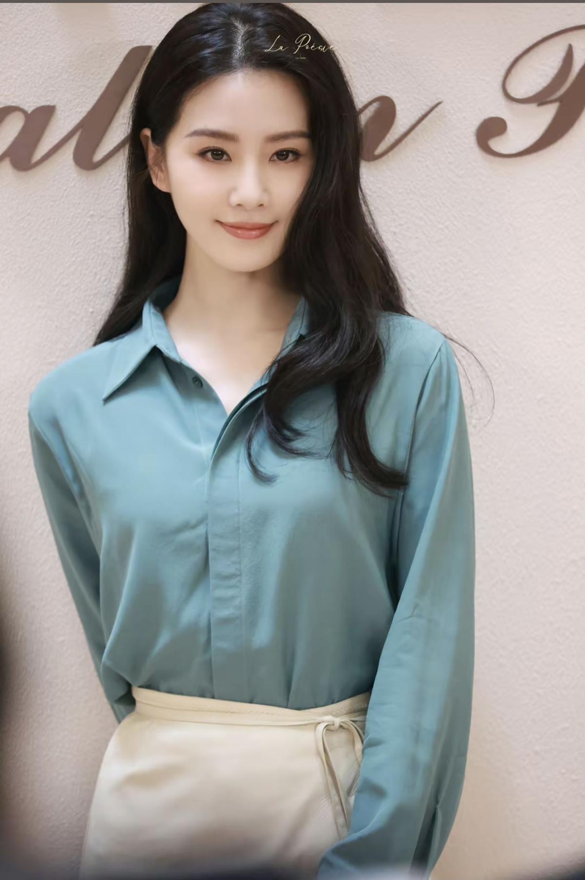 刘诗诗的松石绿缎面衬衫,利用面料的垂坠感中和了半裙的利落,打造出层次丰富的职场优雅风[给力] 低饱和度的松石绿是刘诗诗造型的点睛之笔,适配品牌调性的同时,更凸显了东方女性的温婉气韵[比心][加一][玫瑰]娱乐明星
