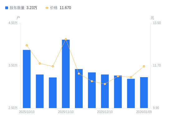 日期A股户数(户)流通A股户均持股数(股)户均持股市值(万元)2026-01-093228021900.9125.562025-12-313190022161.8024.842025-12-193267021639.4724.342025-12-103290021488.1923.472025-11-283340016270.7017.962025-11-203420015890.1018.052025-11-104110013222.4216.952025-10-313220016877.0619.702025-10-203290016517.9819.472025-10-103870014042.4117.64