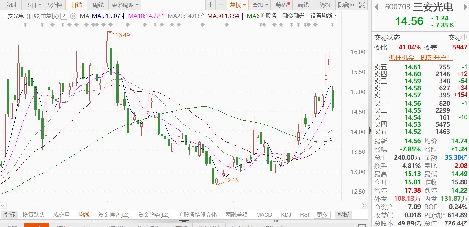 A股异动丨三安光电跌近8%,预计2025年净亏损2亿元-4亿元