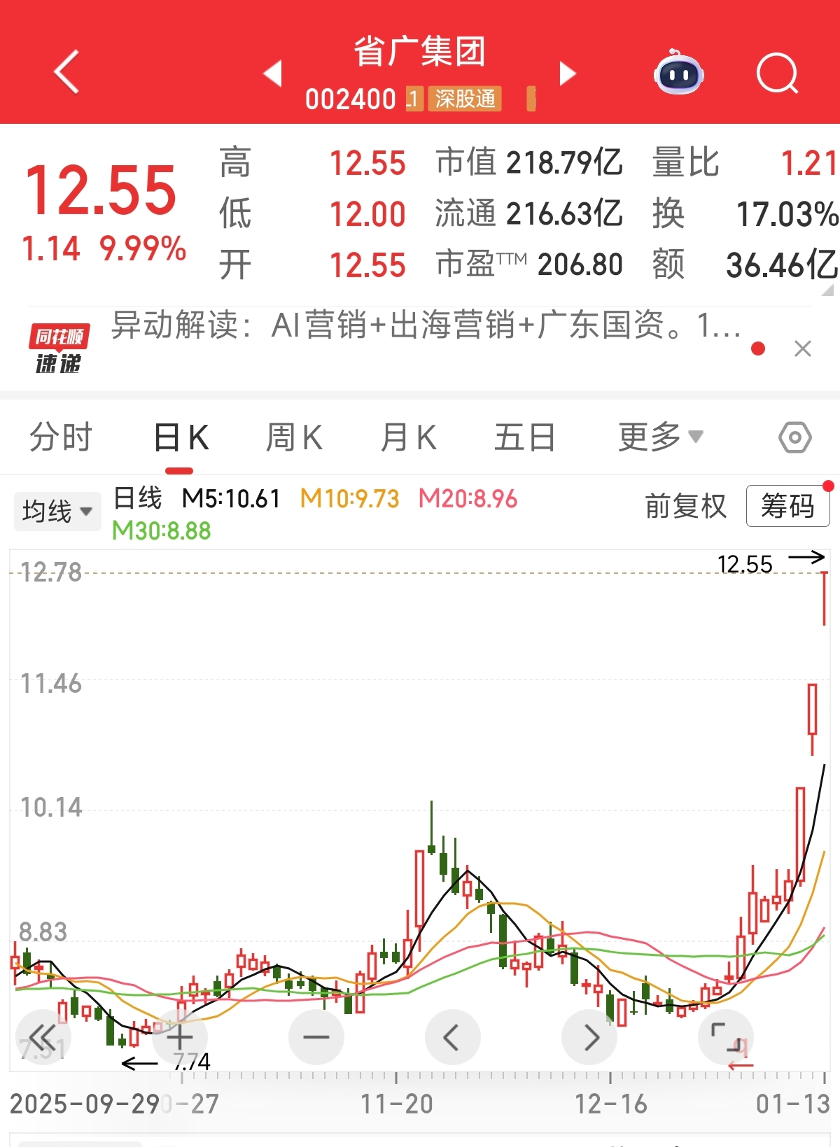 个股异动 | 省广集团涨停