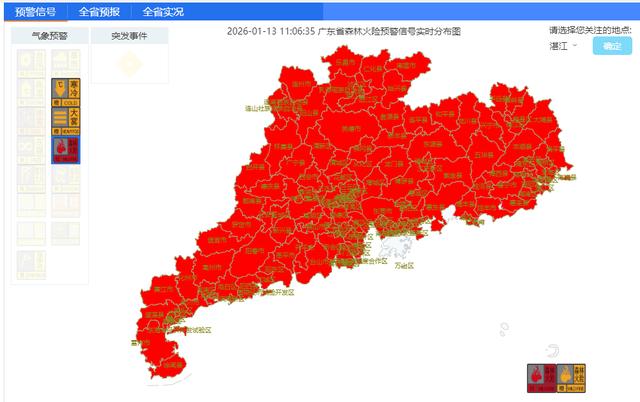 气象部门提醒,目前我市处于枯水期,空气干燥,森林火险风险高,需注意做好森林防火相关防御措施;降水偏少已致雷州半岛大部出现中度气象干旱,全市气象干旱将持续发展,需注意做好抗旱应对相关工作。