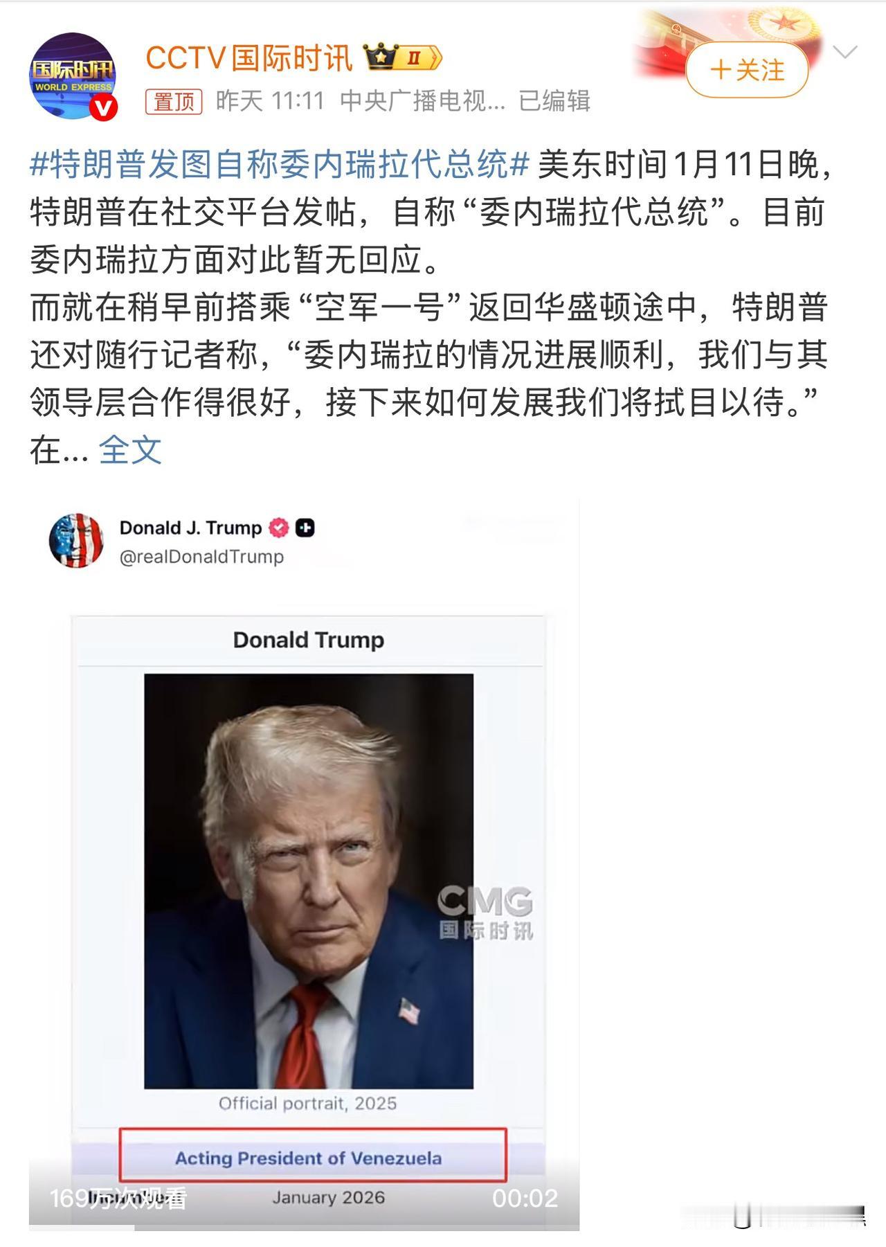 特朗普,这也太没谱了吧 特朗普开创了新的历史,不过,却是丑恶的历史。 历史上很多侵略,大多也遮着脸,弄个傀儡,自己在后面操纵,而在二十一世纪的今天,居然一个国家去绑架另一个主权国家的总统,然后官宣自己继承别国的总统,真是让全世界瞠目。 这脸咋就这么大呢,这是要将委内瑞拉变成委内瑞拉“州”的节奏啊。 臭不要脸[打脸][打脸][打脸][打脸] ——————————