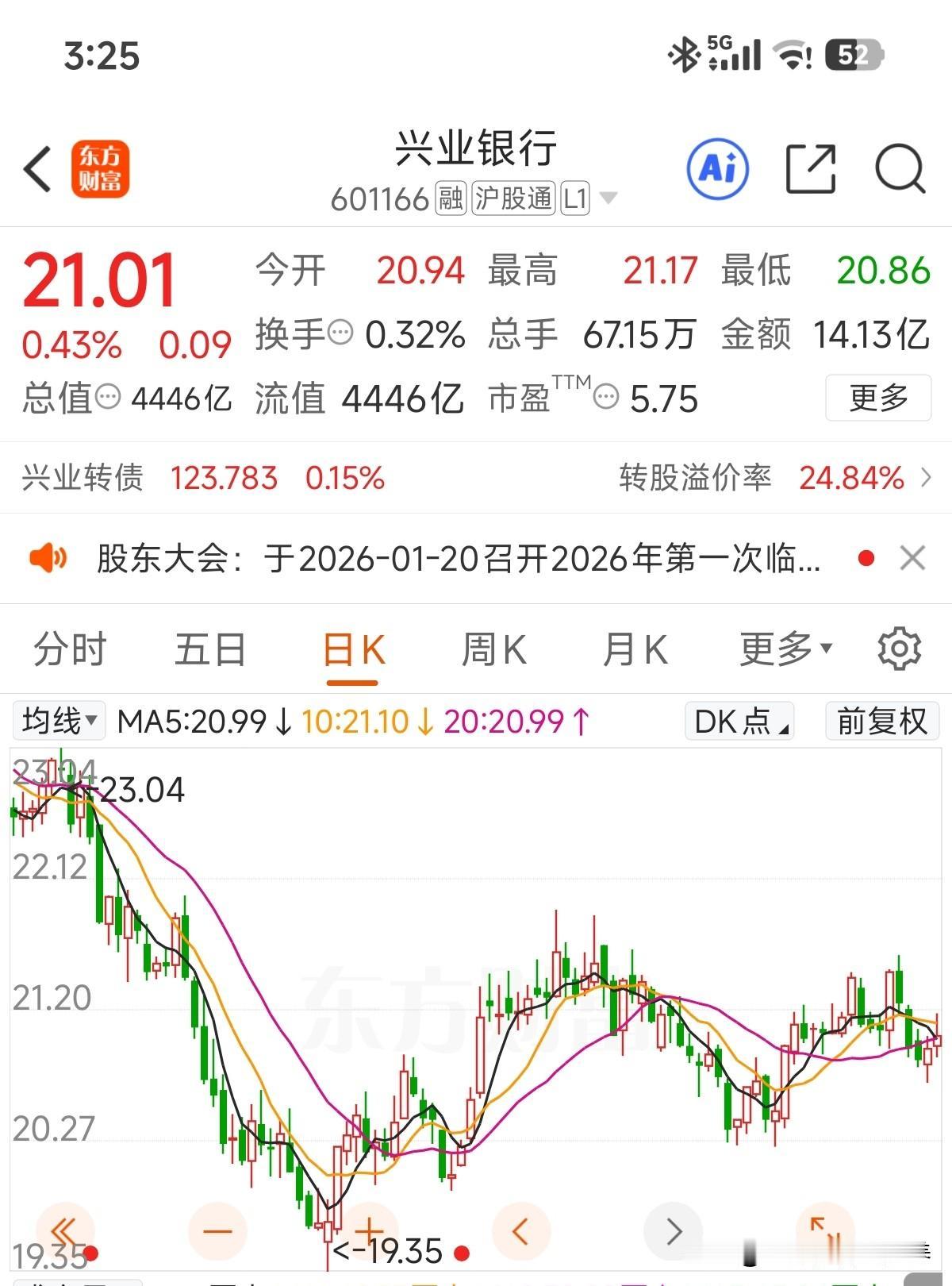 去年1月16日发布业绩快报,按惯例这周也会发!另外隔壁的招商银行15日发放中期分红! 兴业银行每股0.565元的中期分红也快了,对于转股价以下的兴业银行,股息率又在5%以上,继续开启复投计划! 一边收股息复投,一边等待可转债转股,另外看下有没估值修复的小惊喜!