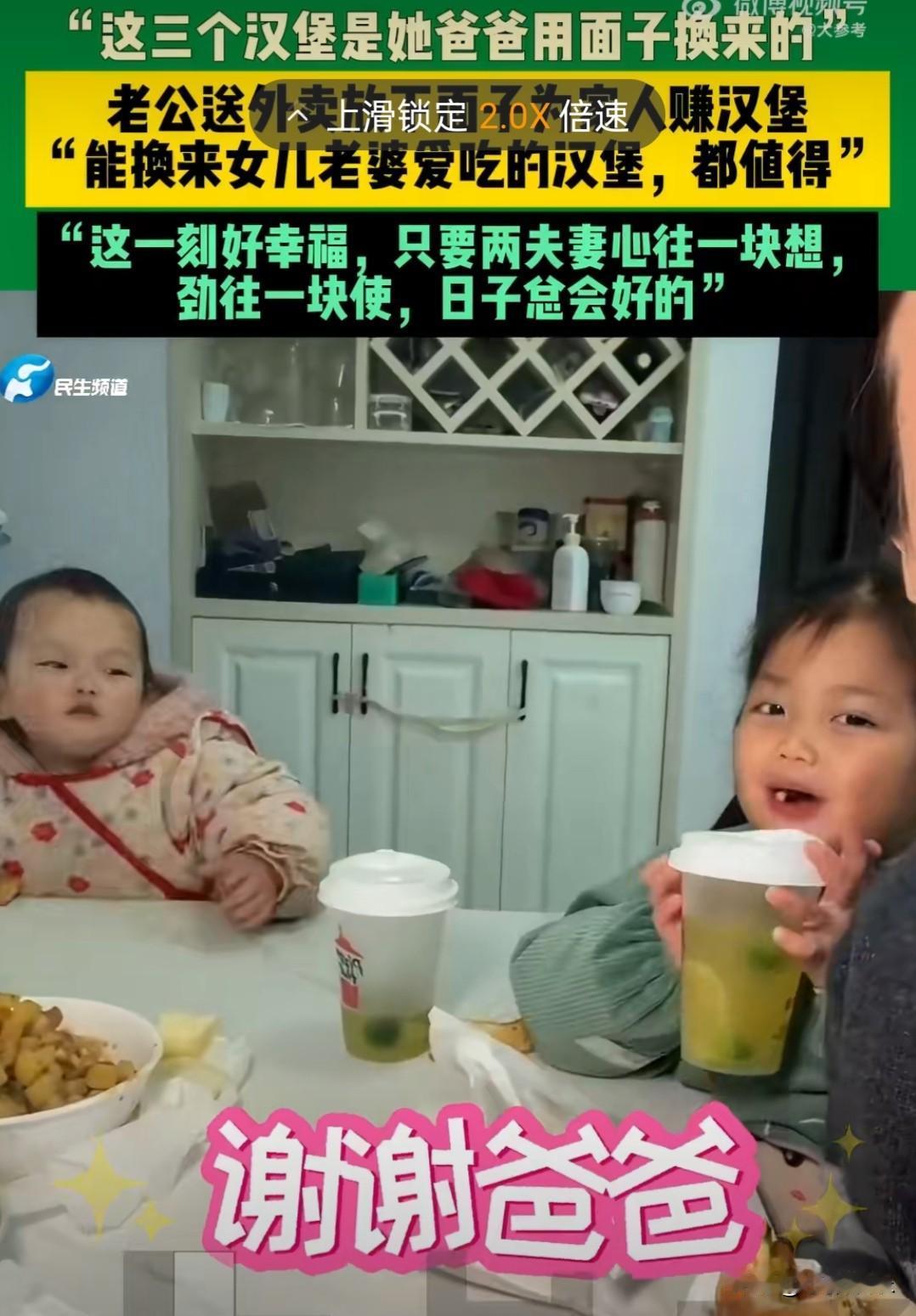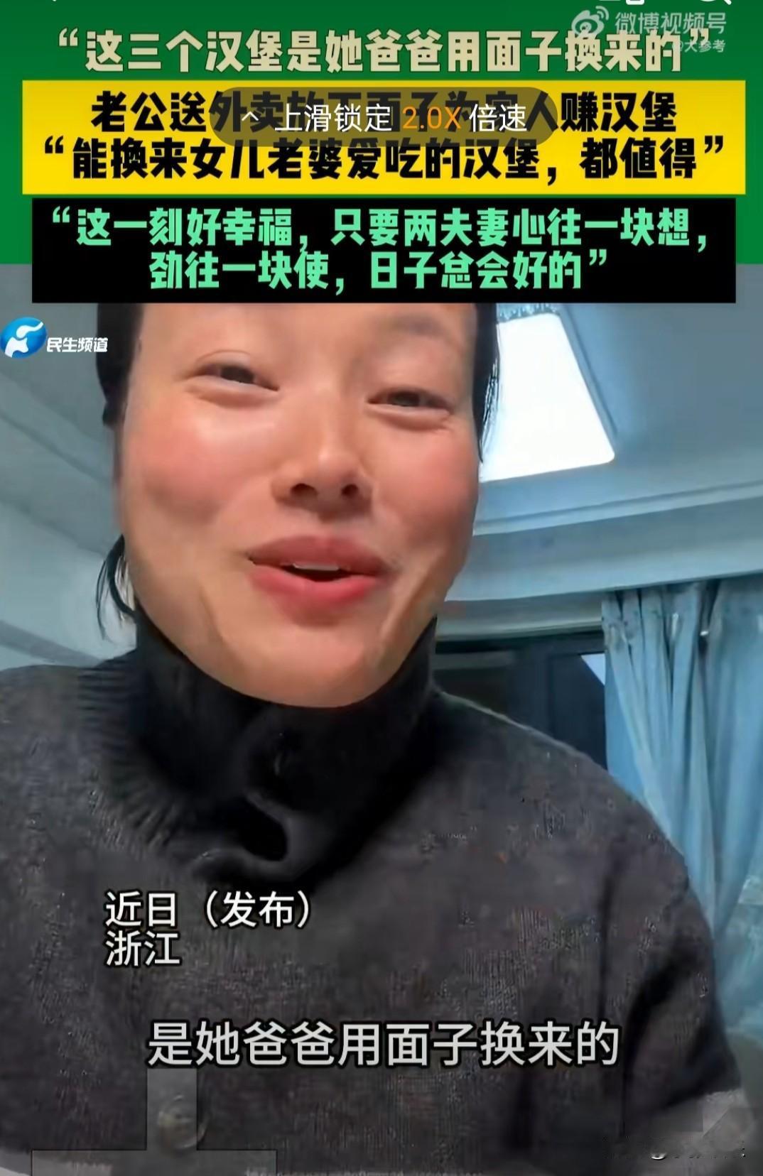那天晚上八点多,他才拖着腿进门,手里小心地提着个纸袋。 “快,还热着。”他挤出笑,把袋子往桌上一放。女儿扒开一看——三个汉堡,眼睛霎时亮了。 我这才知道,他们站点最近有个规矩:一天凑够八个好评,能换一个汉堡或一份意面。他连着三天清早出门,半夜回来,专抢那些路远难送的单——就因为这样的单子容易讨来好评。 “前天七个,昨天差一个……今天总算够了。”他仰头灌水,喉结滚动得厉害,“刚好换三个,咱仨一人一个。” 女儿啃得满嘴芝麻,他就在旁边看着,笑得眼角的纹路深得像用刀刻的。我碰碰他晒得发红的后颈:“这么拼,值吗?” 他转头看我,汗湿的头发贴着额头:“你忘了?上回路过汉堡店,丫头扒着橱窗看了好久。能让她实实在在地咬上一口,这腿就跑得不冤。” 夜里他睡得很沉,呼吸粗重。我轻轻捏着他僵硬的小腿,想起他常说的那句话—— 只要俩人心往一处想,劲往一处使,日子总会好的。 是啊,这三个汉堡不是换来的,是他一步一步,为我们跑出来的。