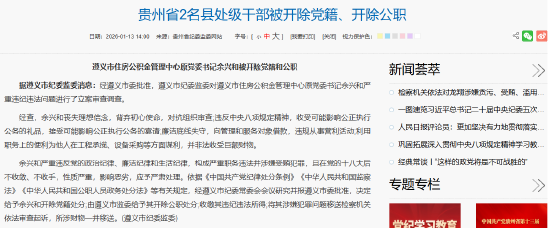 遵义市住房公积金管理中心原党委书记余兴和被开除党籍和公职