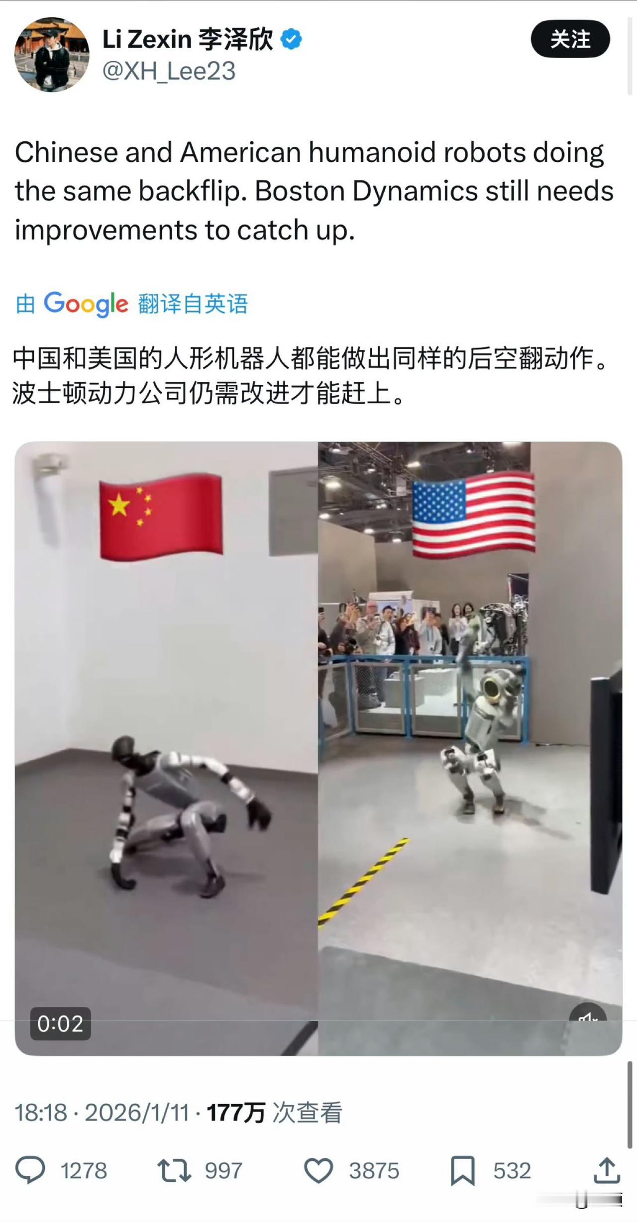 中美机器人翻跟头大比拼,看看外网怎么评?