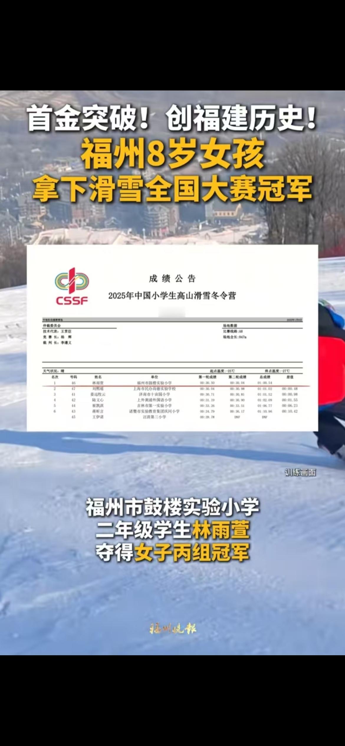 南方人(福建人) 能取得全国滑雪冠军? 对 一位福州小姑娘做到了