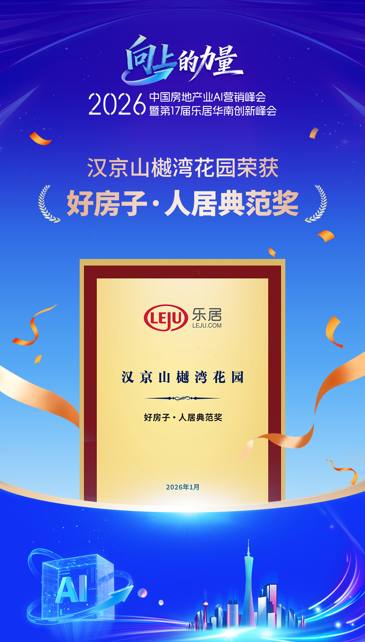 1月13日,“向上的力量”——2026中国房地产业AI营销峰会暨第17届乐居华南创新峰会”在广州隆重举行。