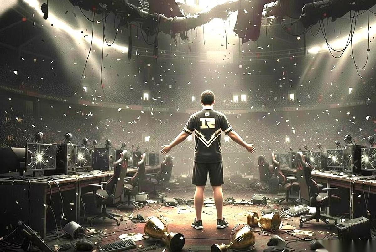 刷到RNG官推的时候,我愣了三秒。 就四个字:RNG out … 配图更狠。一个人,穿着RNG队服,孤零零站在舞台中央。 满地都是摔碎的键盘,还有东倒西歪的奖杯。 那可是奖杯啊。 金色的雨,捧回来的。现在就这么跟垃圾一样,扔了一地。 什么意思?解散了?彻底没了? 我来来回回看了好几遍,最后才看到那个tag:2026LPL。 突然就有点懂了。 这不是宣告结束,这像是一种……诀别,或者说,是一种预言。 一个王朝的背影,就这么定格了。 “皇族永不言弃”。 这句话喊了多少年,我们听了多少年。 但有时候,时代会替你做出选择。 那些曾经让你热血沸腾的名字,一个个暗淡下去,最后消失在选手名单里。就像我们,一个个告别校园,走上工位,被生活磨平棱角。 没什么不甘心的。 只是,挺唏嘘的。 不知道该说什么。就感觉,青春的一部分,好像真的被摔碎在那一地狼藉里了。