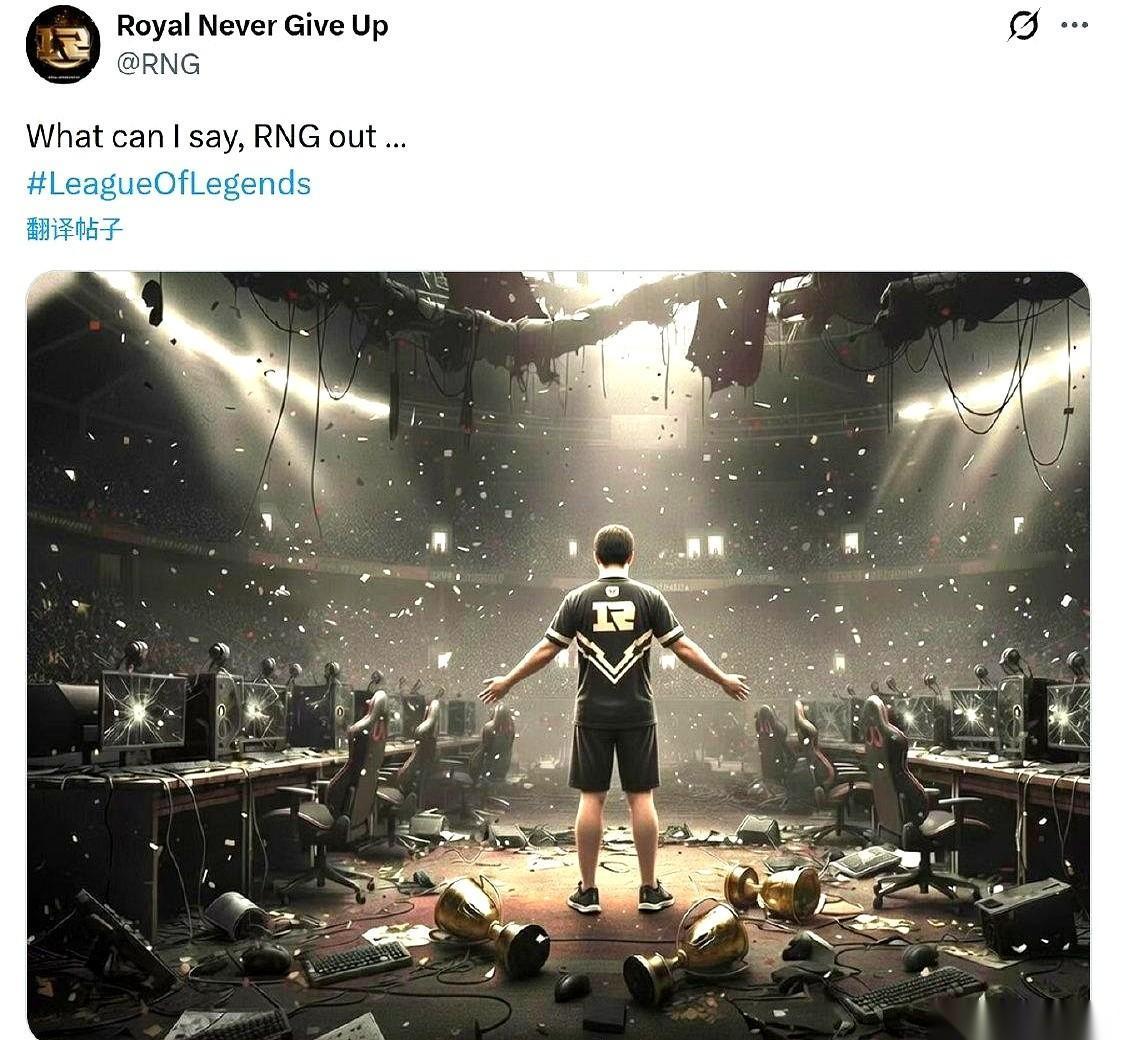 刷到RNG官推的时候,我愣了三秒。 就四个字:RNG out … 配图更狠。一个
