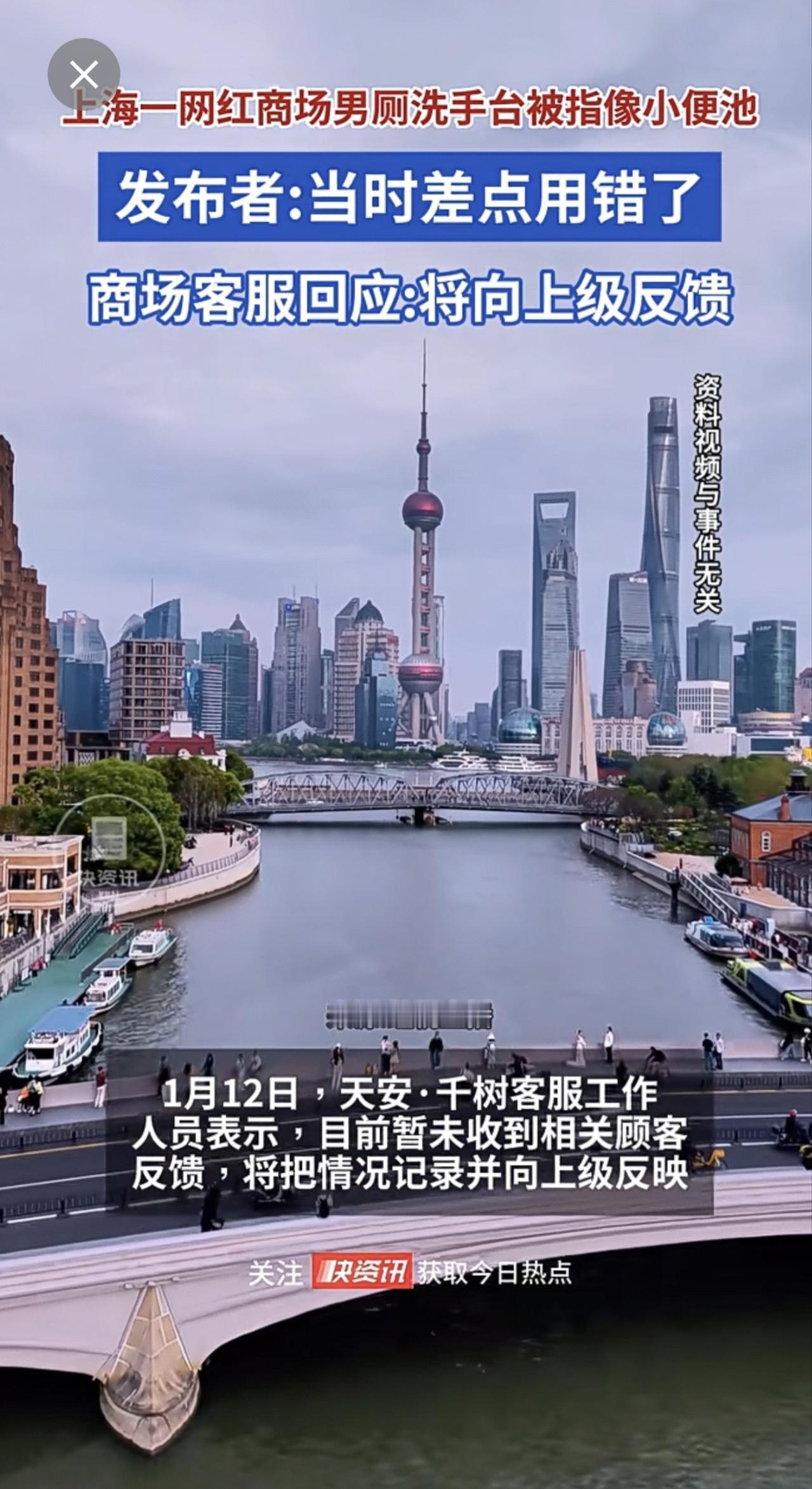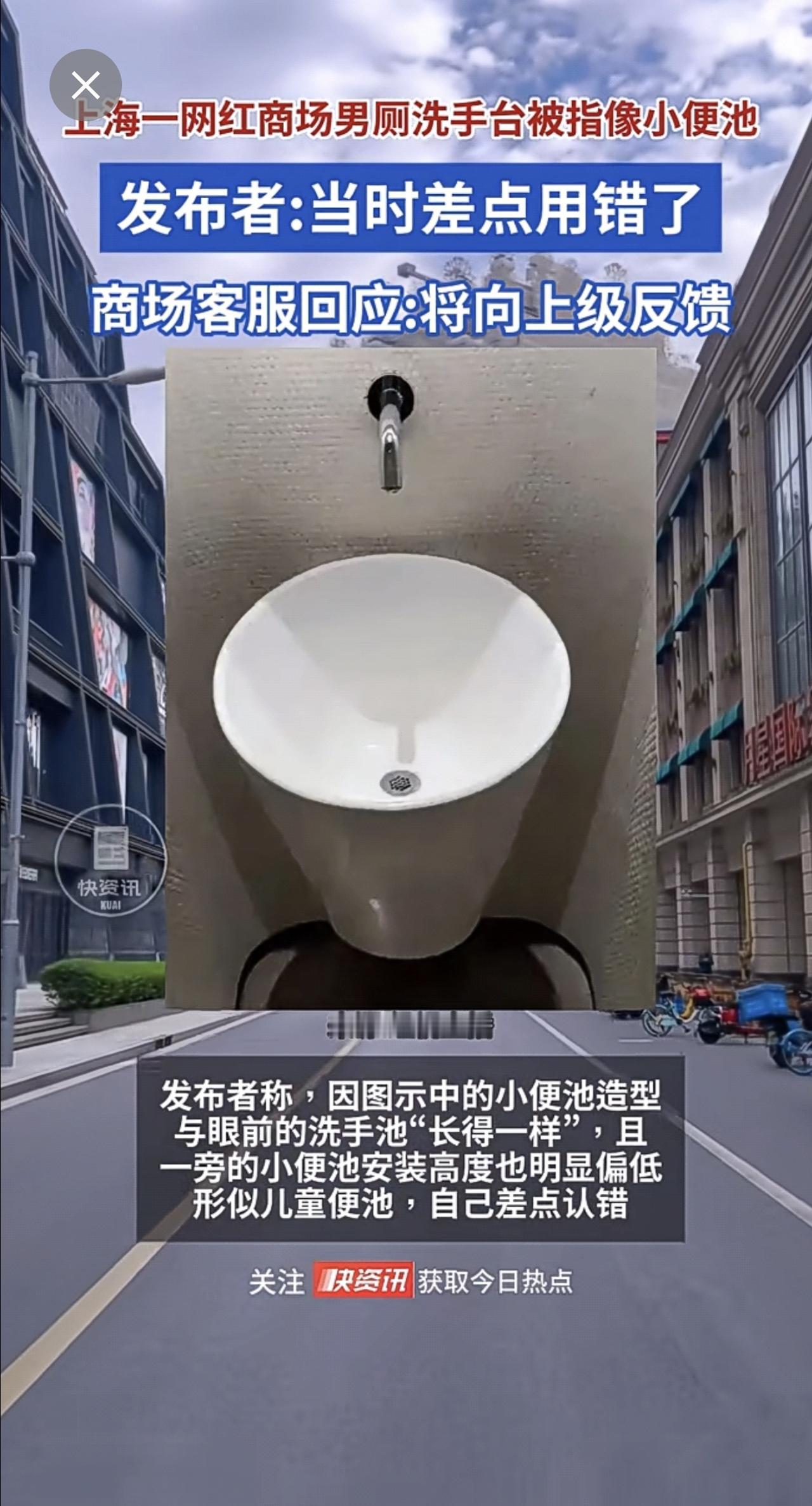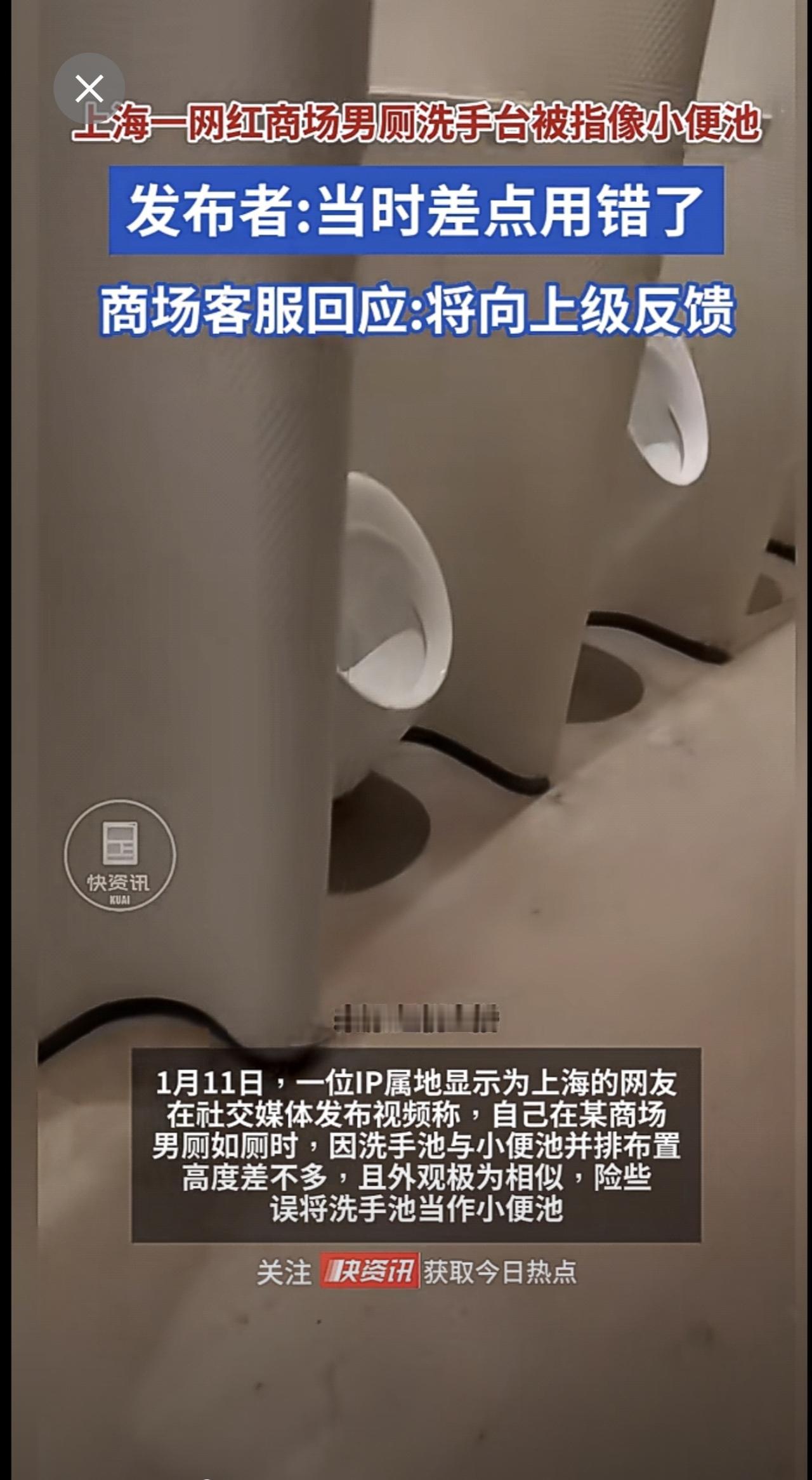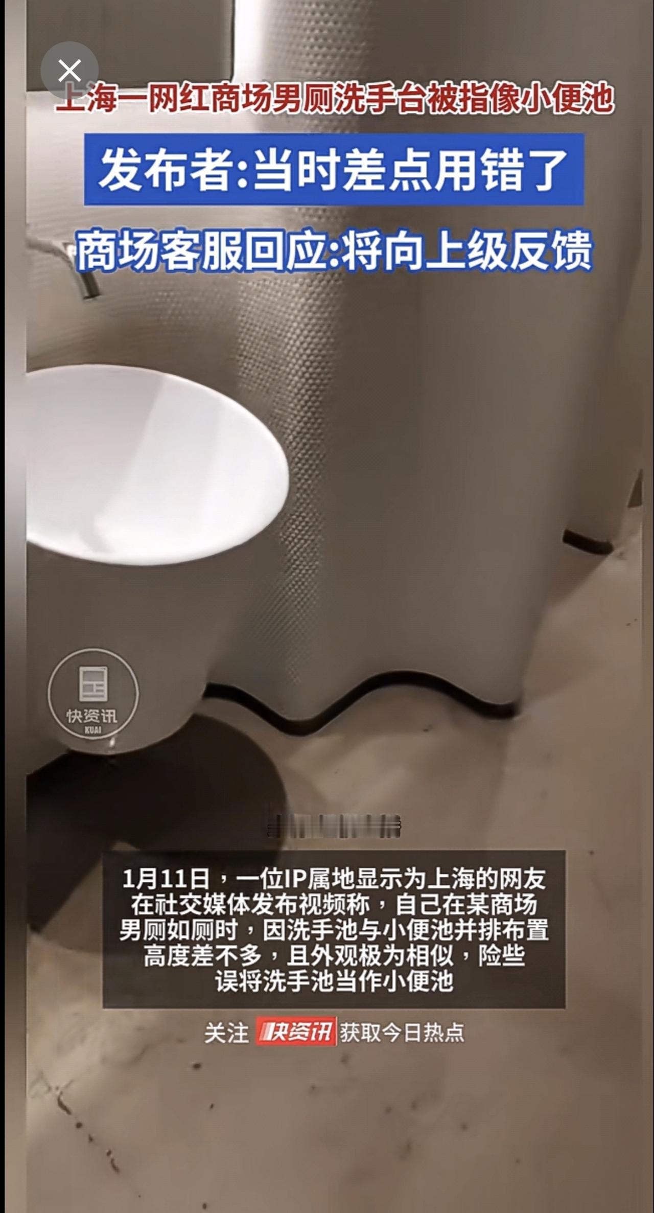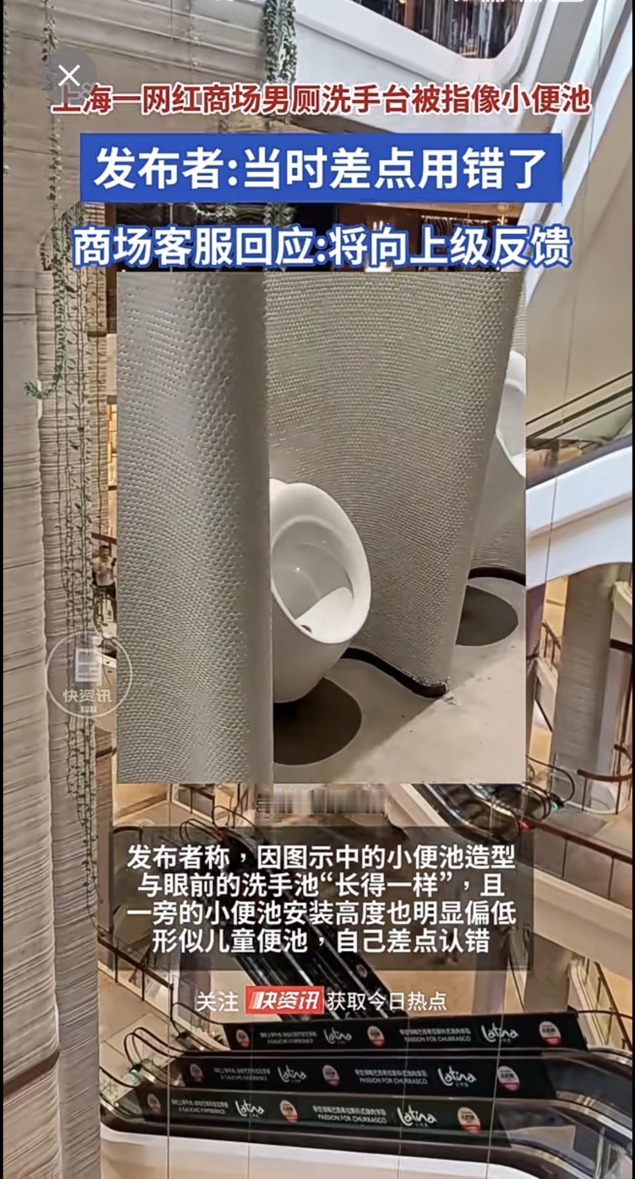 上海一网红商场男厕洗手台被指像小便池,发布者:当时差点用错了