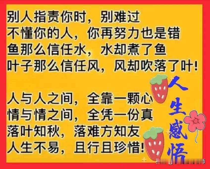 2026: 学会放下, 让自己更好的前行。 人与人之间,全靠一颗心。情与情之间,全凭一份真。世间只有轮回的四季,没有轮回的人生,所以余生, 过好自己的生活最重要,两分看透,三分释怀,五分爱自己。 杨绛先生说得好:“少在烂事上纠缠,少为不值得的人生气,让自己活的更贵一点,学会放下,才能更好的前行。” 人生路上,必须懂得:人生有三把钥匙:接受、改变、离开,不能接受的就改变,改变不了的就离开,少问别人为什么,多问自己凭什么。勿以小恶弃人大美,勿以小怨忘人大恩。人生不易,且行且珍惜!