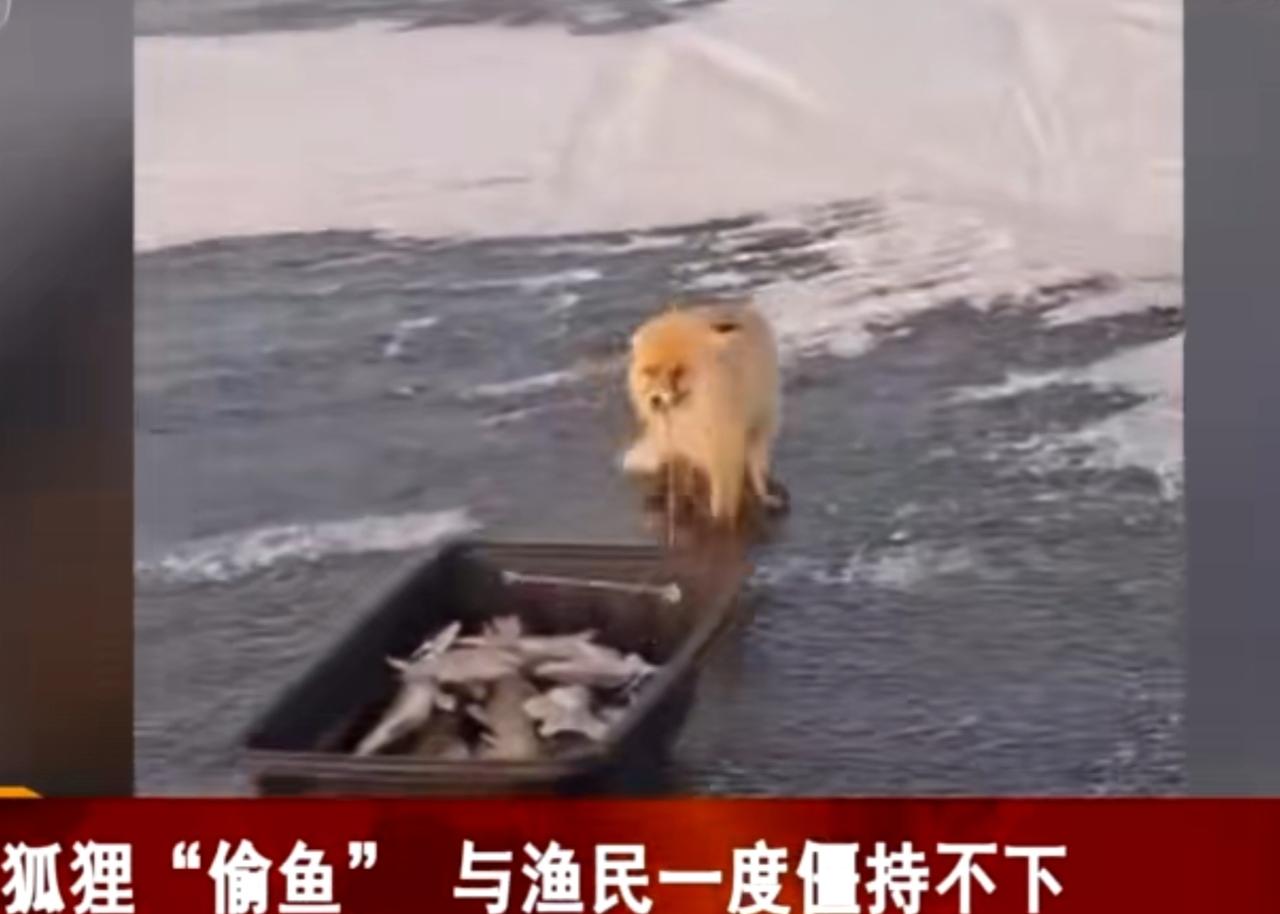 在冰天雪地的渔区,一只红狐狸盯上了渔民的渔获,径直叼起鱼就想溜走,被发现后与渔民展开了一场有趣的“拉锯战”。画面里狐狸死死咬住鱼不肯松口,即便身处冰面和浅水中也不愿放弃,和渔民僵持许久。这一幕既展现出狐狸的狡黠贪吃,又充满了人与自然互动的趣味,让人忍俊不禁。