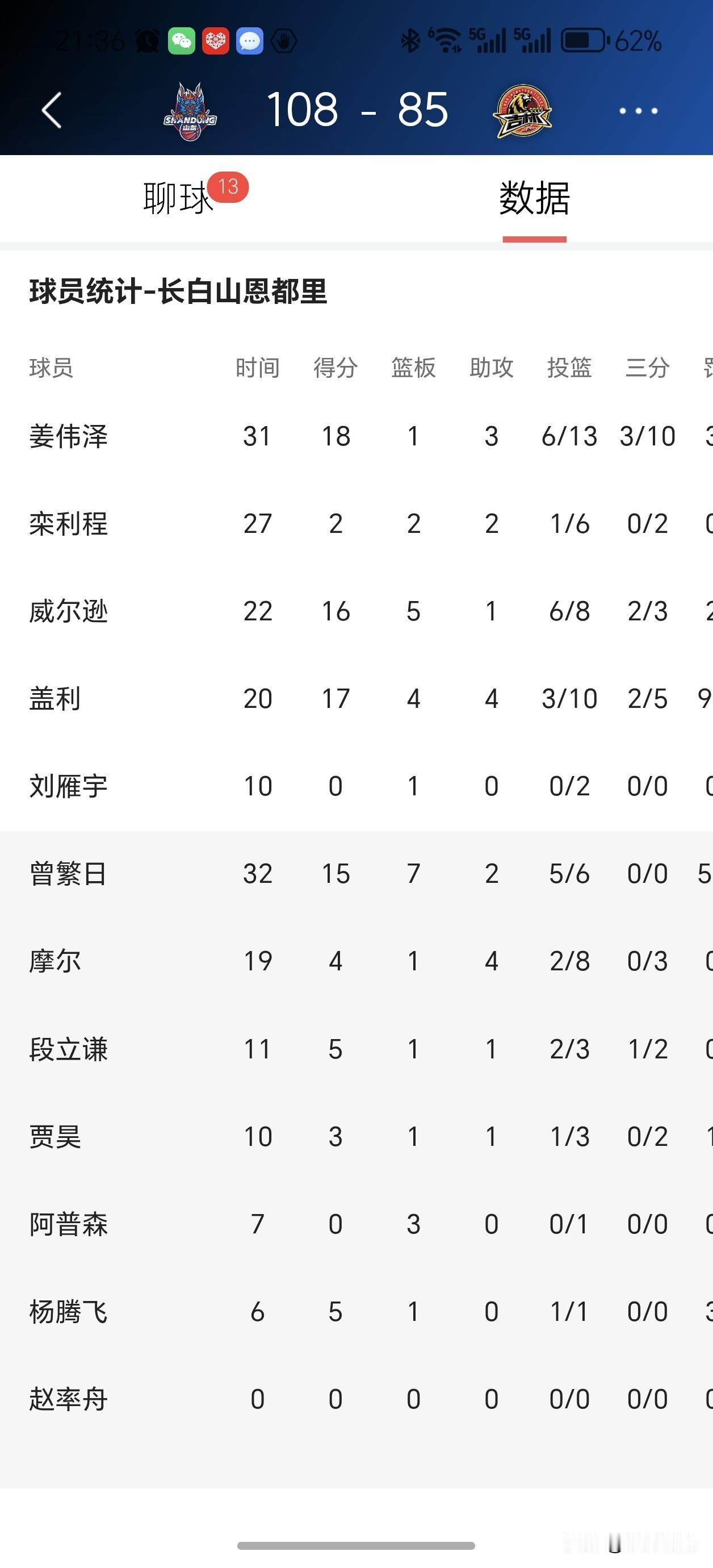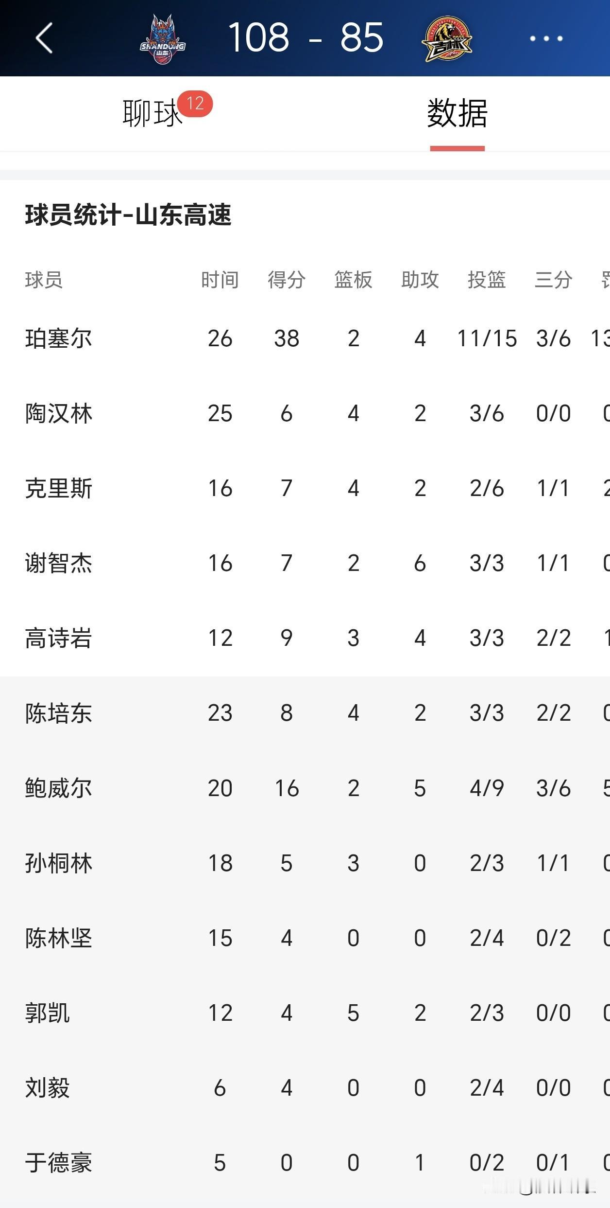 七连胜!山东男篮今夜杀疯了,珀塞尔38分打崩吉林 108:85!一场彻彻底底的碾压局!山东高速男篮在临沂主场,把吉林队安排得明明白白,豪取七连胜!这状态,热得发烫! 今夜的主角,毫无疑问是外援珀塞尔。这家伙简直是无解的存在,轰下38分,正负值+29!什么意思?就是他在场,山东队净胜29分!三分线外一步就敢扔,还个个进,这谁防得住?吉林队的球员看他拿球,估计头皮都发麻——今夜,他就是的“宙斯”,雷火全开,凭一己之力冲垮了对手整条防线。 鲍威尔也找回了手感,16分5助攻,第四节那个3+1打得干脆利落,彻底扑灭了吉林队反扑的小火苗。全队11人得分上4+,真正打出了团队篮球,行云流水,看得人舒坦! 不过,胜利中也带点“小瑕疵”。全队犯规27次,有点上头了。谢智杰、陶汉林双双五犯毕业。孙桐林也背着4犯,这毛病,打强队可得收一收。 今晚还是个“纪录之夜”: - 珀塞尔的38分,赛季新高,杀神模式! - 陶汉林送出一记大帽后,生涯盖帽数来到450次,追平邹雨宸,并列CBA历史盖帽榜第15位!恭喜“小鲨鱼”! 有意思的是,两位山东旧将面对老东家,心情恐怕是冰火两重天。 盖利卯足了劲,拿下17+4+4,算是证明了自己。而摩尔就有点郁闷了,4分4犯规,第一节就背上犯规麻烦,打得那叫一个憋屈。 唯一让部分球迷觉得“美中不足”的是,面对吉林这样的“客场虫”,邱彪指导依然没给王证等小将锻炼时间。 好在第四节最后6分钟,全华班出战,刘毅、陈培东、谢智杰都抓住了机会,表现可圈可点,算是给了主力宝贵的喘息时间。 总而言之,这是一场从结果到过程都令人满意的胜利。七连胜稳稳到手,球队气势如虹,团队手感火热。尽管有些小瑕疵,但谁又能要求一场完美的比赛呢?山东队,继续冲!这状态,保持下去! 球迷朋友们,今夜大家看得过瘾吗?七连胜了,下一步期待什么?评论区聊聊! 山东男篮 七连胜