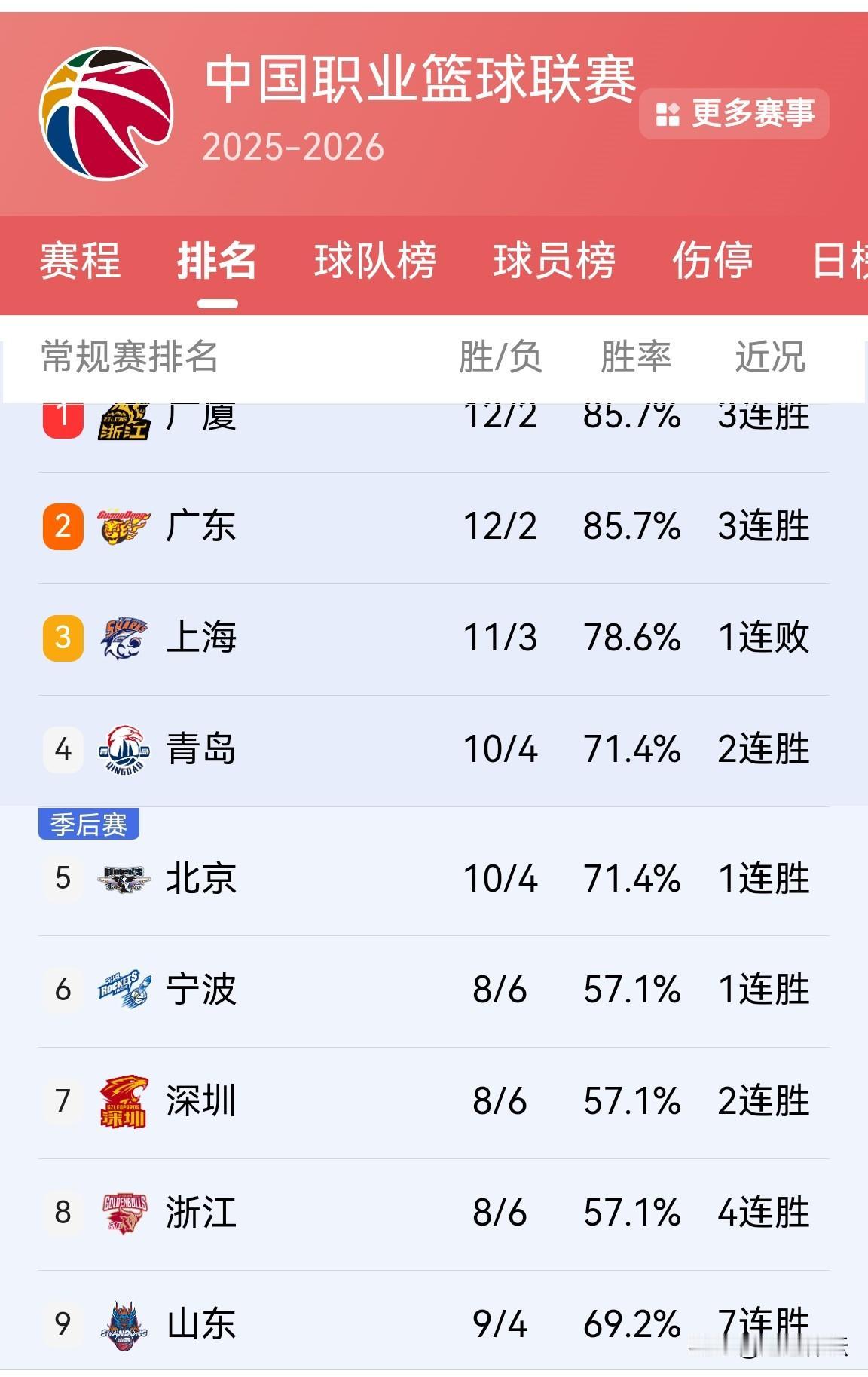 cba最新的排行榜来了! 十四轮结束, cba排行榜出现了一个看不明白的问题!就是山东高速男篮,由于跟广州男篮少赛一场,即便是胜率排在第6名,也无济于事,最终cba排名排在第9名!也就是说,山东高速男篮即便是和广州的比赛,输掉了比赛,也会来到第六名,就是因为这一场比赛没有打,竟然落后于三个胜率比自己低的球队!这样的排名真的让人无语!