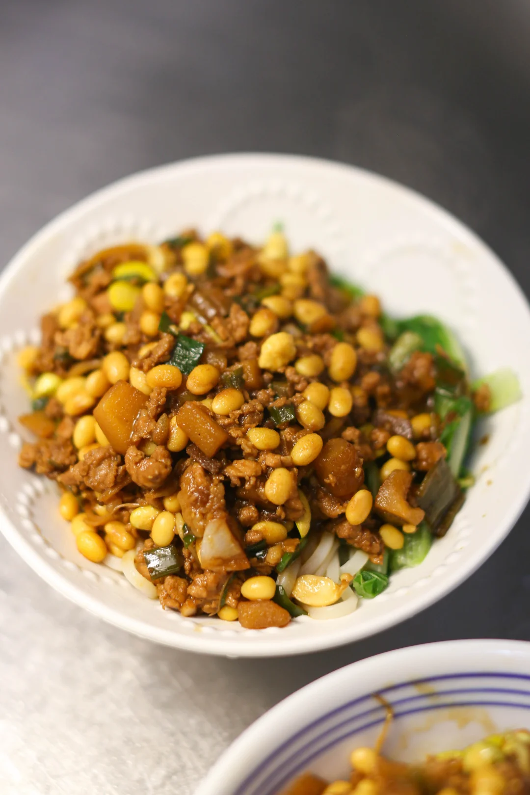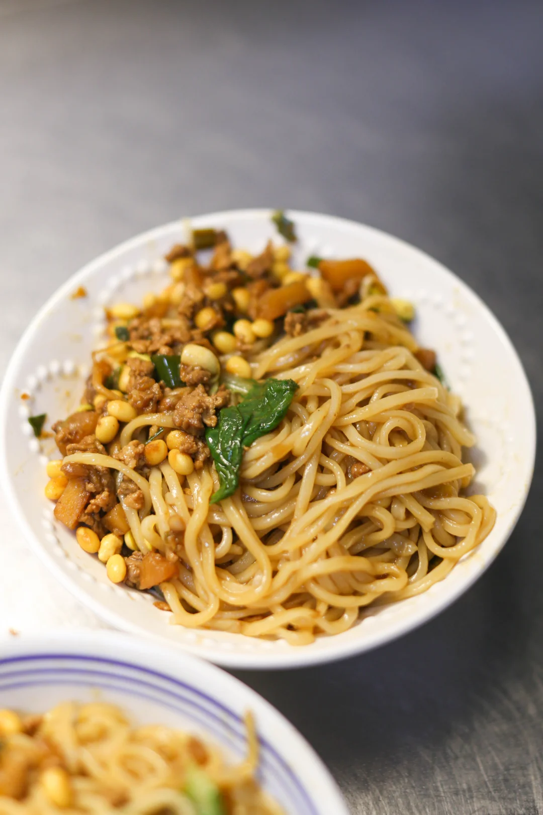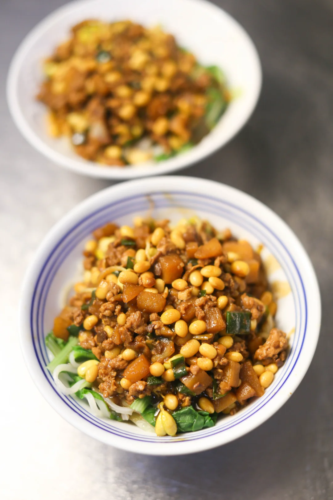 小时候吃的炸酱面,妈妈都是用黄豆和土豆丁做的,小时候不爱吃肉,有时候只有这两样。