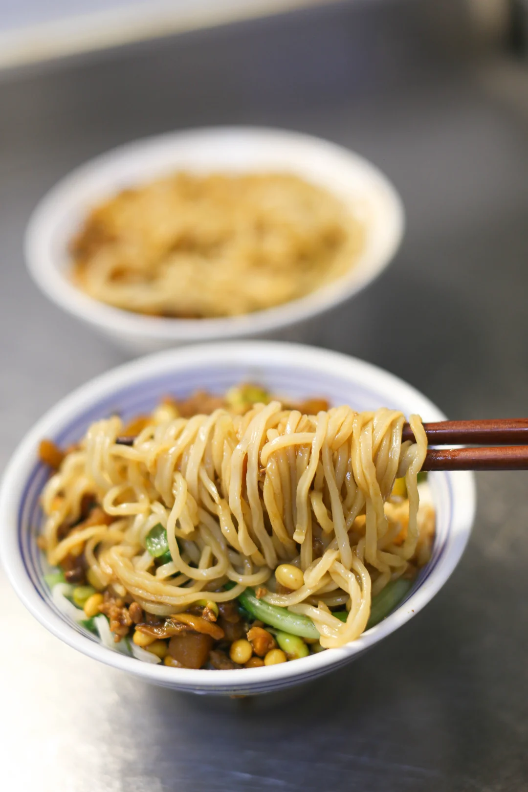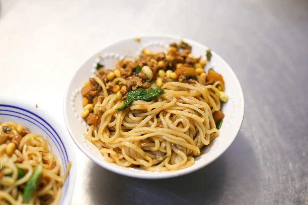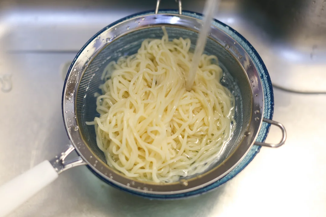 面条煮好,过凉水,浇上炸酱。