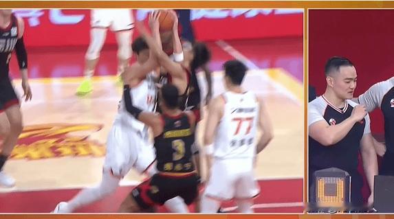 王哲林肘击王浩然,这一下很疼 王哲林内线拿球,转身肘击到王浩然,裁判苦
