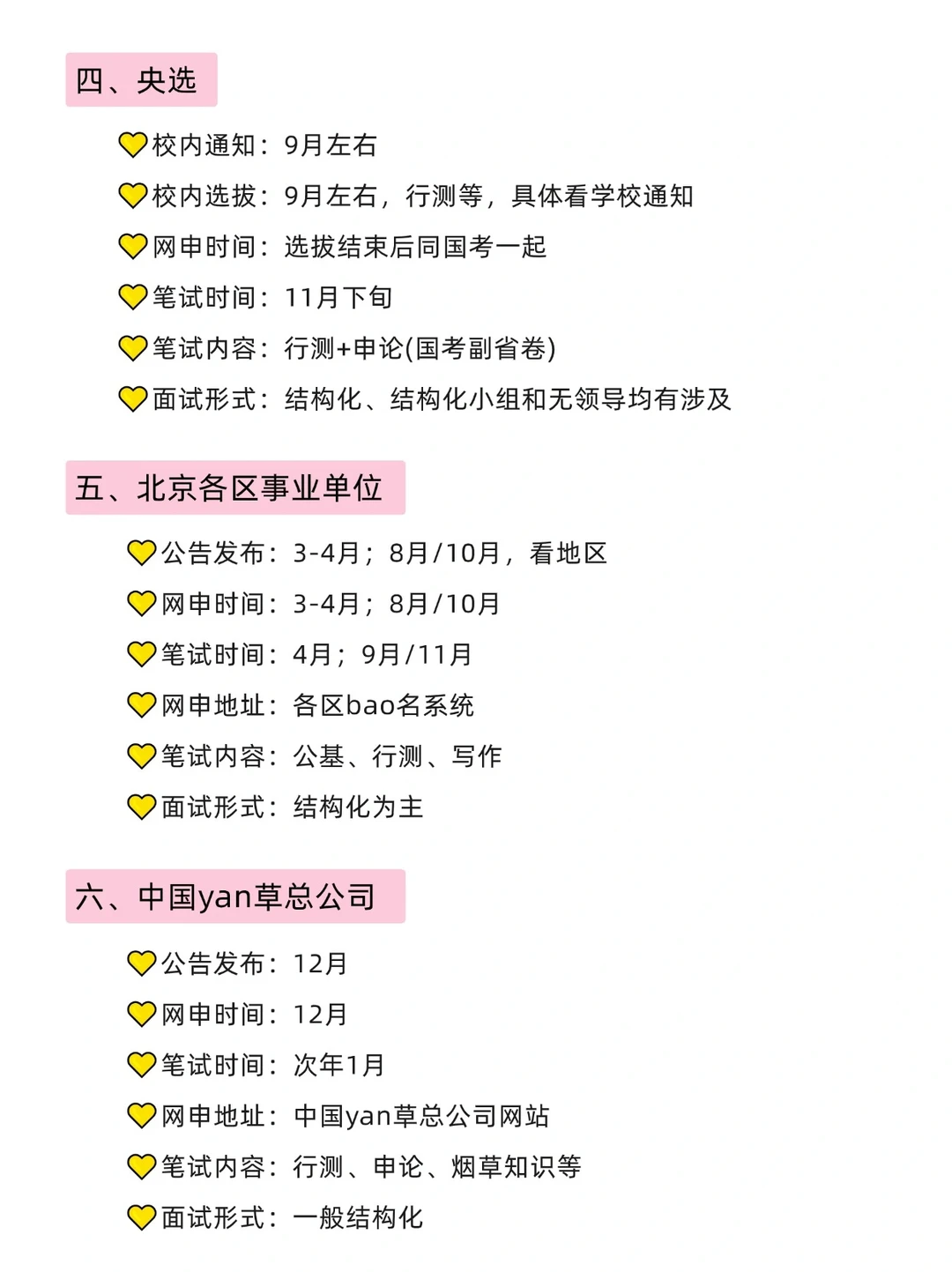 4⃣️ 央选:校内选拔9月左右,网申是同国考一起
