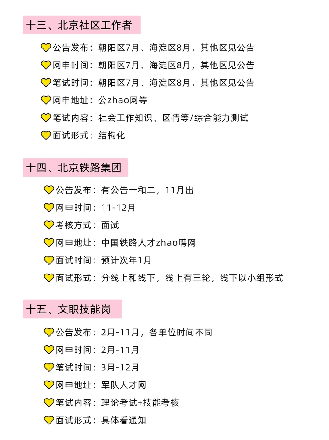 1⃣️3⃣️北京社区工作者:朝阳7月、海淀8月,其他区见公告