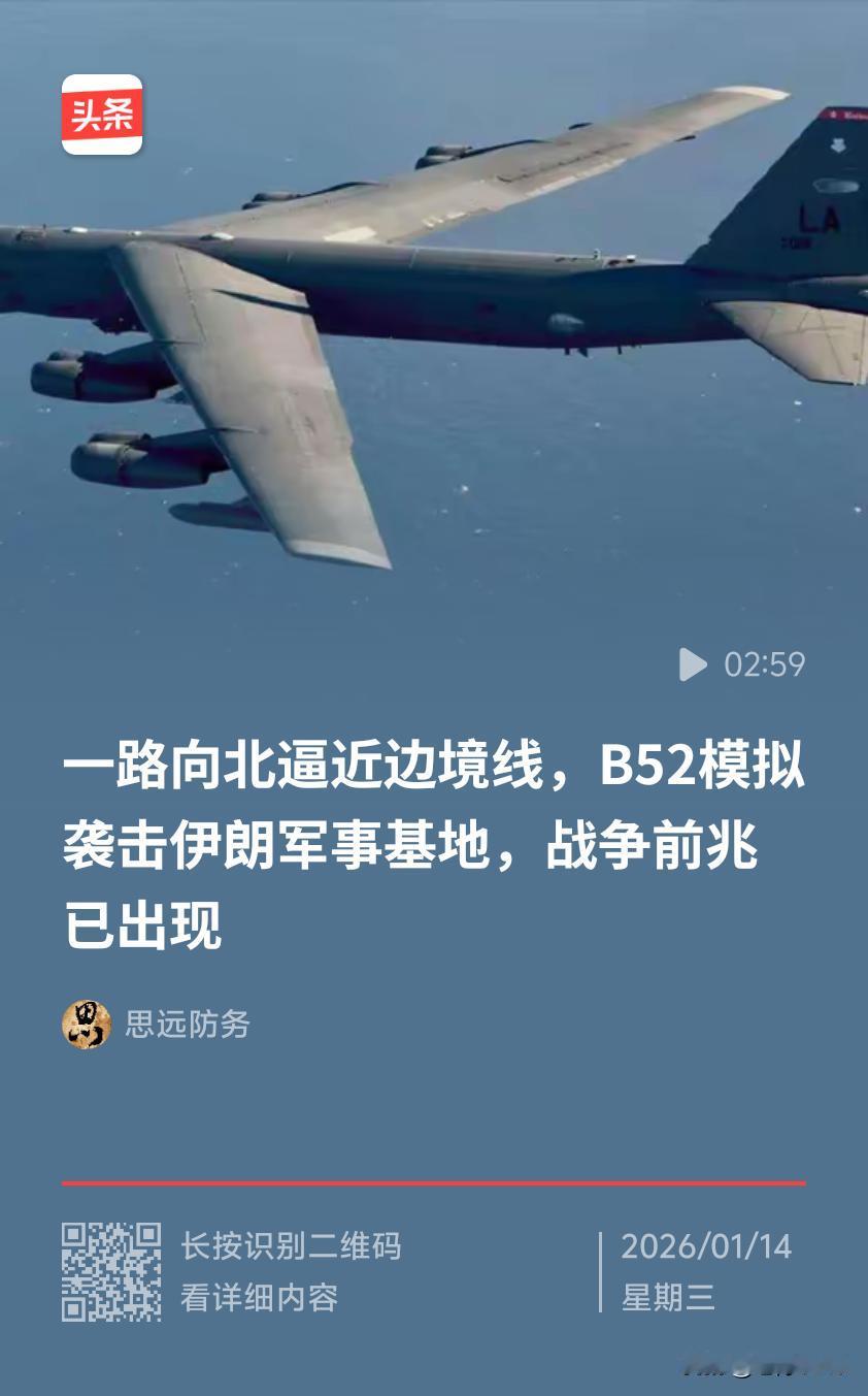 当地时间1月11日夜间,以色列第14频道披露,包括KC - 135R空中加油机与B - 52轰炸机在内的多架美军军机,从卡塔尔乌代德空军基地相继升空,该基地距伊朗边境仅200公里。 背后目的 ● 军事威慑:B - 52是美军“威慑利器”,经多次现代化升级,最大航程1.6万公里,有效载荷31.5吨,能携带多种武器执行防区外打击,从乌代德基地起飞作战半径可覆盖伊朗全境,此举威慑意味明显。 ● 配合外交施压:美国白宫新闻秘书称“外交是首选”,但强调“必要时动用军事力量”,军事行动与表态呼应,是“强迫外交”手段,想让伊朗心理防线崩溃。 ● 试探伊朗反应:观察伊朗军事部署、防空系统反应能力和战略决心,从而评估伊朗防御和应对能力,为后续行动提供情报。 ● 满足国内政治诉求:临近中期选举,特朗普想获犹太财团和游说集团支持,不能忽视以色列的诉求,拿伊朗行动可能为获取政治支持。 带来影响 ● 地区局势紧张:中东本就复杂敏感,美军举动使美伊对立升级,加剧地区不稳定,如大规模冲突爆发,中东局势将面临巨大动荡。霍尔木兹海峡作为全球能源运输要道,可能受影响,冲击国际能源市场和经济。 ● 美伊关系更加恶劣:此前美伊关系紧张,此次军事威慑致外交对话更难,双方可能采取更激进立场和措施,使矛盾进一步激化。 ● 伊朗强硬回应:面临巨大军事压力,伊朗不会坐以待毙,议长警告若遭袭将给美国“永生难忘的教训”,外长称做好应对一切的准备。伊朗有中东庞大导弹库,控制霍尔木兹海峡,还有代理人武装,其反击可能使美国难承受。 ● 国际社会呼吁克制:国际社会担忧美伊冲突扩大引发地区灾难,纷纷呼吁双方克制。中国反对干涉内政和使用武力威胁,希望各方维护中东和平稳定;俄罗斯指出美进一步行动会给地区带来灾难性后果。