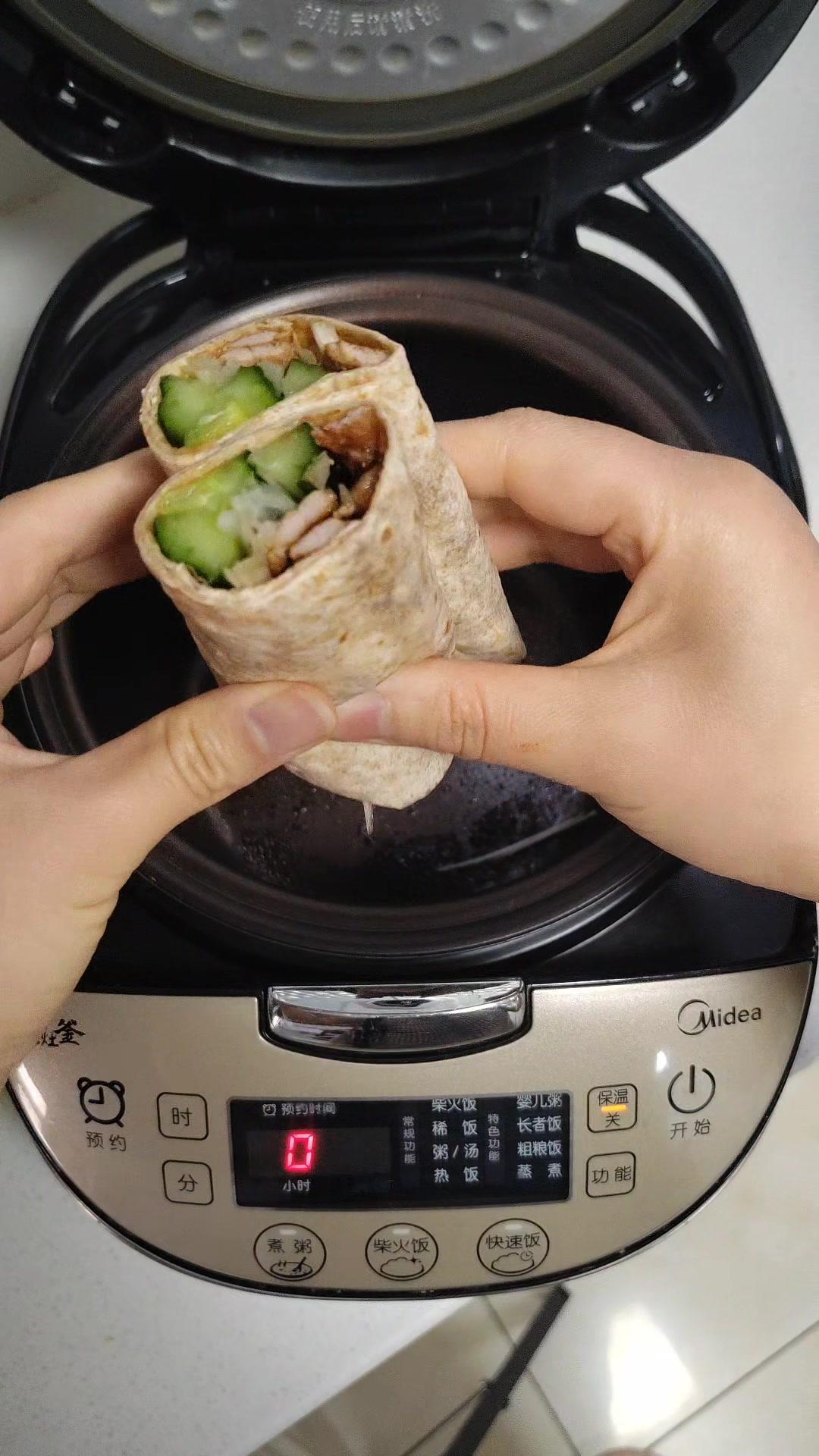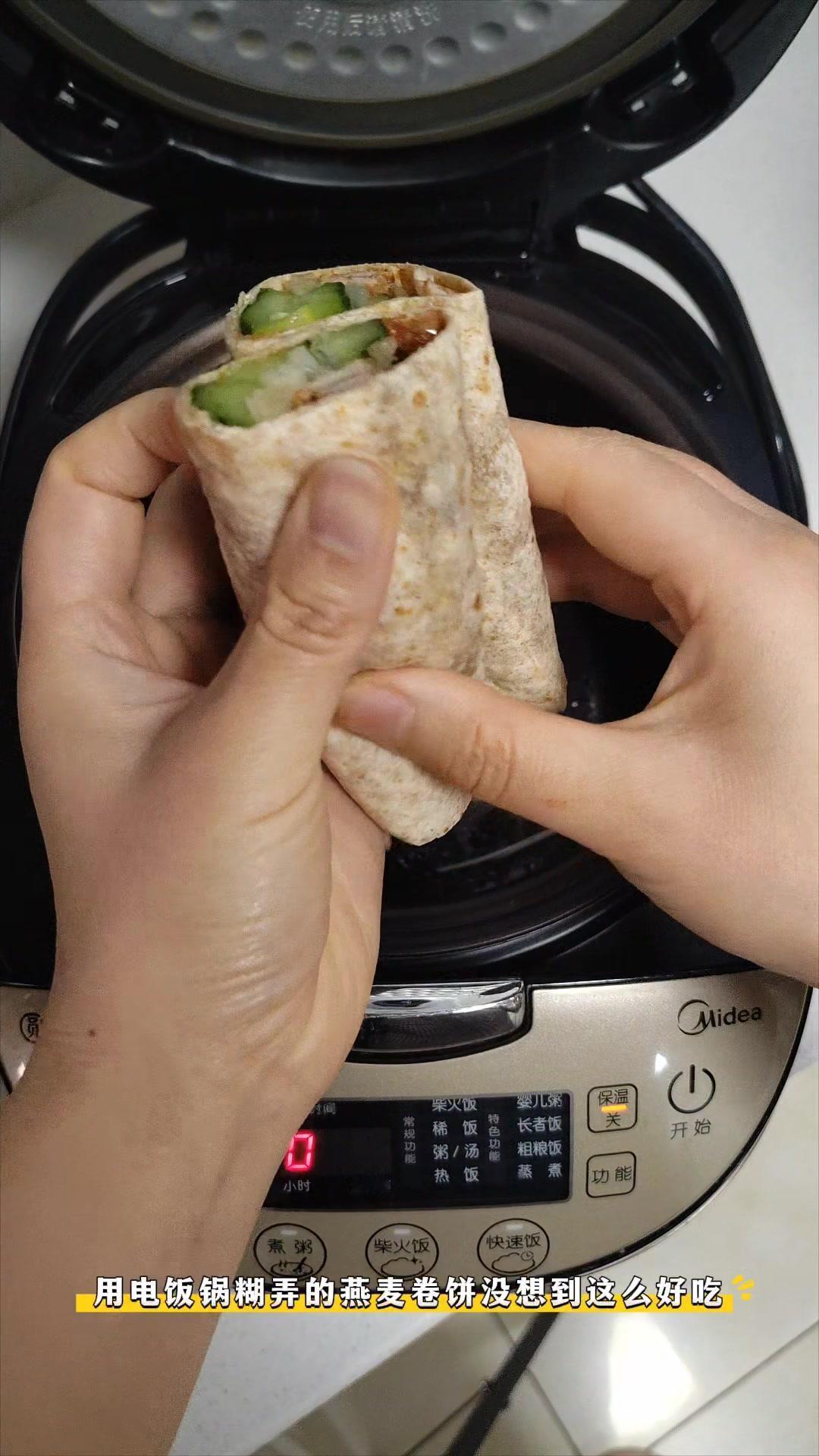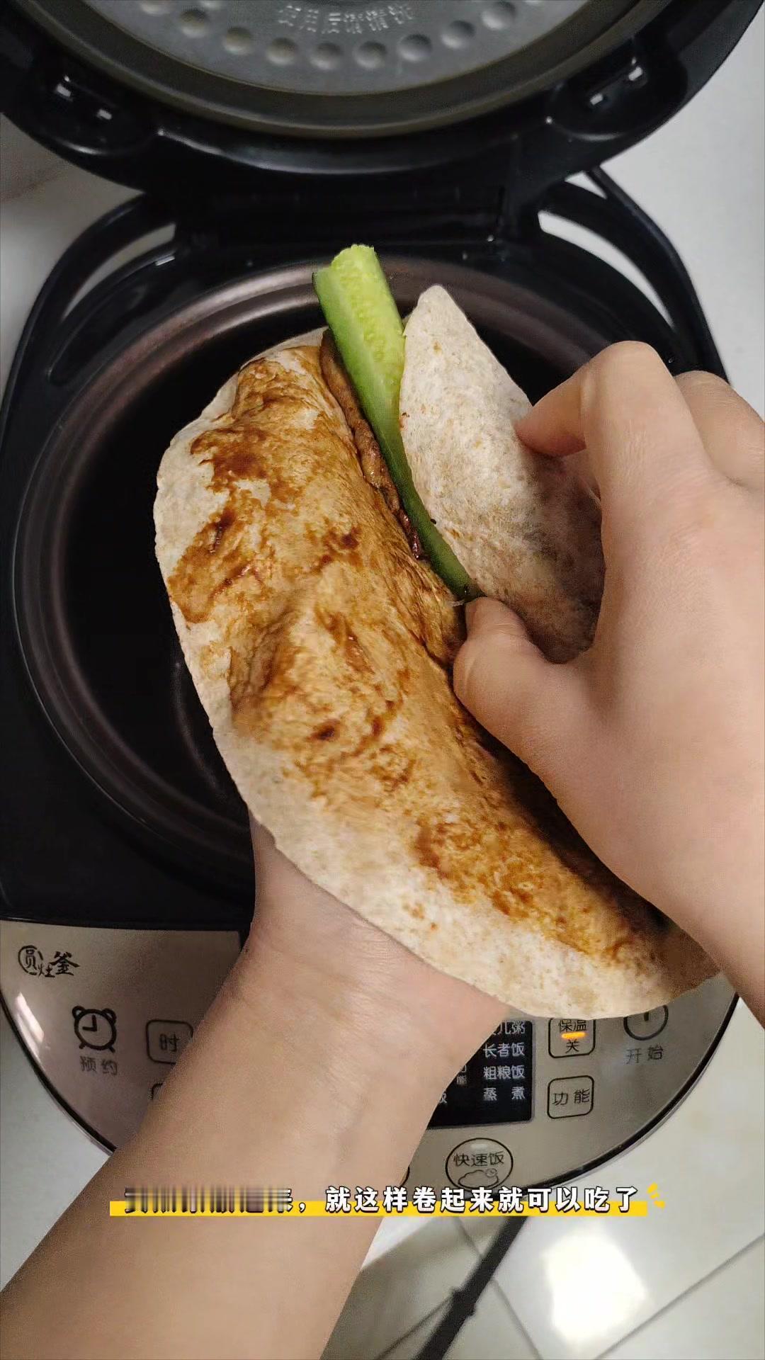 �电饭锅懒人餐!燕麦里脊卷饼绝了!🍳电饭煲就能搞定的燕麦里脊卷饼,好吃低卡还解馋!不用复杂步骤,新手也能轻松复刻~ 1️⃣准备食材:提前腌制好的里脊肉,一张燕麦饼,甜面酱,葱丝,黄瓜条。 2️⃣烹饪过程:电饭锅刷油,放入腌制好的里脊肉,按煮饭键,7-8分钟后翻面,再放入燕麦饼焖2分钟。 3️⃣组装享用:燕麦饼抹上甜面酱,放上里脊肉、葱丝和黄瓜条,卷起来就能吃啦~ 低卡又美味,宅家不出门也能享受到的简单快乐!