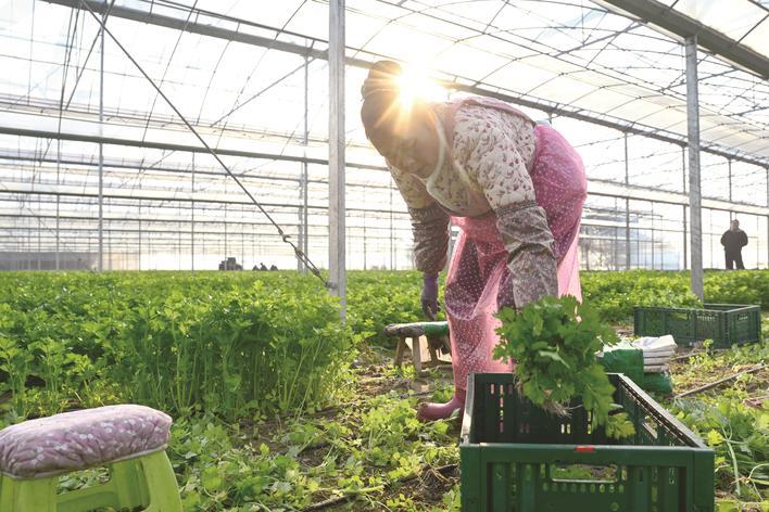 昨天,走进平湖市广陈镇浙江绿迹农业科技有限公司的温室大棚,一片绿意盎然,工人们正在收割沙地里长好的芹菜。