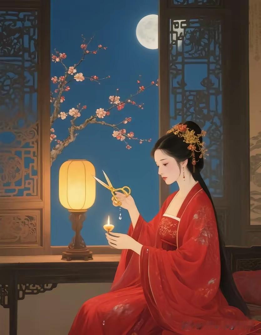 剪烛西窗月影斜, 寒梅户外望灯花。 看来寂寞两相似, 物我有情映窗纱。