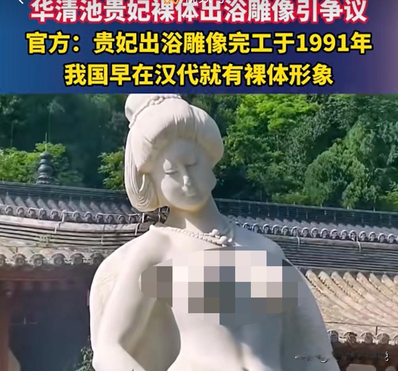 华清池杨贵妃裸浴雕像我觉得也十分不妥,建议换一个地方摆放或者直接回收库房。虽然景区回应说是1991年就已经完工了,而且在我国古代也有少量裸体形象。咱们分别来看,在我国古代的确有少量裸体形象。但这些形象主要用于墓葬、宗教壁画或者民间极小范围内的信仰!看见没,这些用途要么是私密的地方,要么宗教典故艺术形象。但杨贵妃不一样,人家是贵妃,随意把人家的身体展示出来,礼貌吗?尊重古人吗?是不是在刘泠的故居也来一个全裸雕像?至于说1991年雕像就完工了,就更没有说服力了。不雅就是不雅,不可能说你摆得久就雅观了。艺术创作也要尊重历史文化,老外喜欢玩儿裸体艺术,那是他们古代就没啥华丽的衣服,穿上还不如光着身子更美。但在国内可不行,咱们的主流传统文化中就没有这么一说。如果赞同在华清池景区摆放该雕像的人,我就问一个问题。回家去翻一下自家的族谱,翻到比较出名那个,然后让雕塑家给他设计一个裸雕,摆出来供游客观赏,你能接受不?