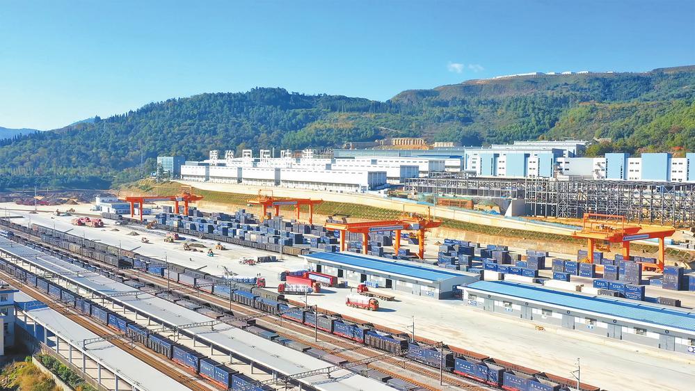 汽笛轰鸣贯山河,铁脉奔腾通四海。在中老铁路这条连接中国与东南亚的“黄金通道”上,腾俊国际陆港作为云南省面向南亚东南亚的重要国际性物流枢纽,交出了一份令人瞩目的成绩单:中老铁路跨境业务到发运量达10128TEU(国际标准箱),同比增长100.6%,创开站以来的历史新高。这一突破,是腾俊国际陆港主动服务和融入国家战略、践行发展使命的生动体现。通过推进通道建设、创新运营模式、促进产业集聚等一系列系统性布局,腾俊国际陆港正持续释放中老铁路潜力,成为畅通国内国际双循环的门户枢纽。