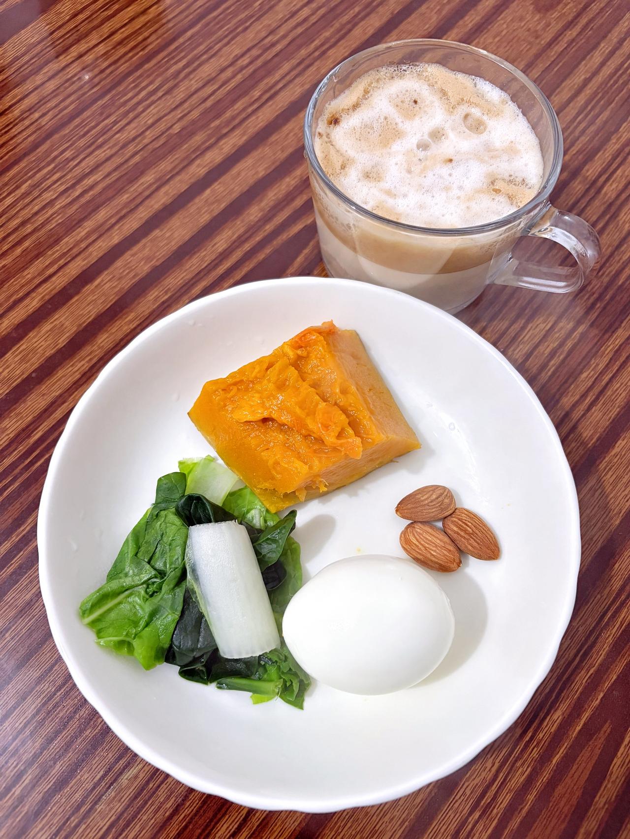 泪水打湿我的减脂餐,发誓瘦到103斤,加油 今日减脂早餐:南瓜+鸡蛋+拿铁+干果
