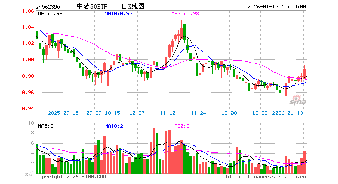 1月13日,中药50ETF(562390)涨0.92%,成交额445.84万元。当日份额减少100.00万份,最新份额为7942.90万份,近20个交易日份额增加100.00万份。最新资产净值计算值为7776.10万元。