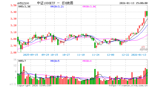 1月13日,中证1000ETF(512100)跌2.03%,成交额32.14亿元。当日份额增加2.64亿份,最新份额为269.59亿份,近20个交易日份额增加18.70亿份。最新资产净值计算值为896.85亿元。