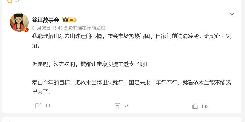 💥“别人疯狂买买买,泰山却稳如泰山!”当中超转会市场热闹非凡,各队大鱼大肉引援时,山东泰山却“按兵不动”,球迷急得直跳脚!泰山前场“三叉戟”独一档,中场“铁腰”硬,后场国脚云集,这配置,还买啥球星?与其花大钱买过气球星,不如建青训基地,培养自己的“依木兰”!六边形战士,大脑型球员,未来可期!泰山走的是务实路,不砸钱,培养年轻小将。今天的“清冷”,或许正是为了明天的沸腾!依木兰们若能横空出世,国足中场有望!你觉得依木兰能成为国足中场核心吗?留言区聊聊他的未来!🔮