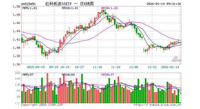 1月14日,红利低波50ETF(515450)开盘跌0.07%,报1.411元。红利低波50ETF(515450)重仓股方面,养元饮品开盘跌0.06%,洋河股份跌0.39%,中国外运涨0.17%,雅戈尔涨0.13%,陕西煤业涨0.04%,格力电器跌0.05%,双汇发展跌0.08%,中国神华涨0.24%,梅花生物跌0.10%,申能股份涨0.12%。